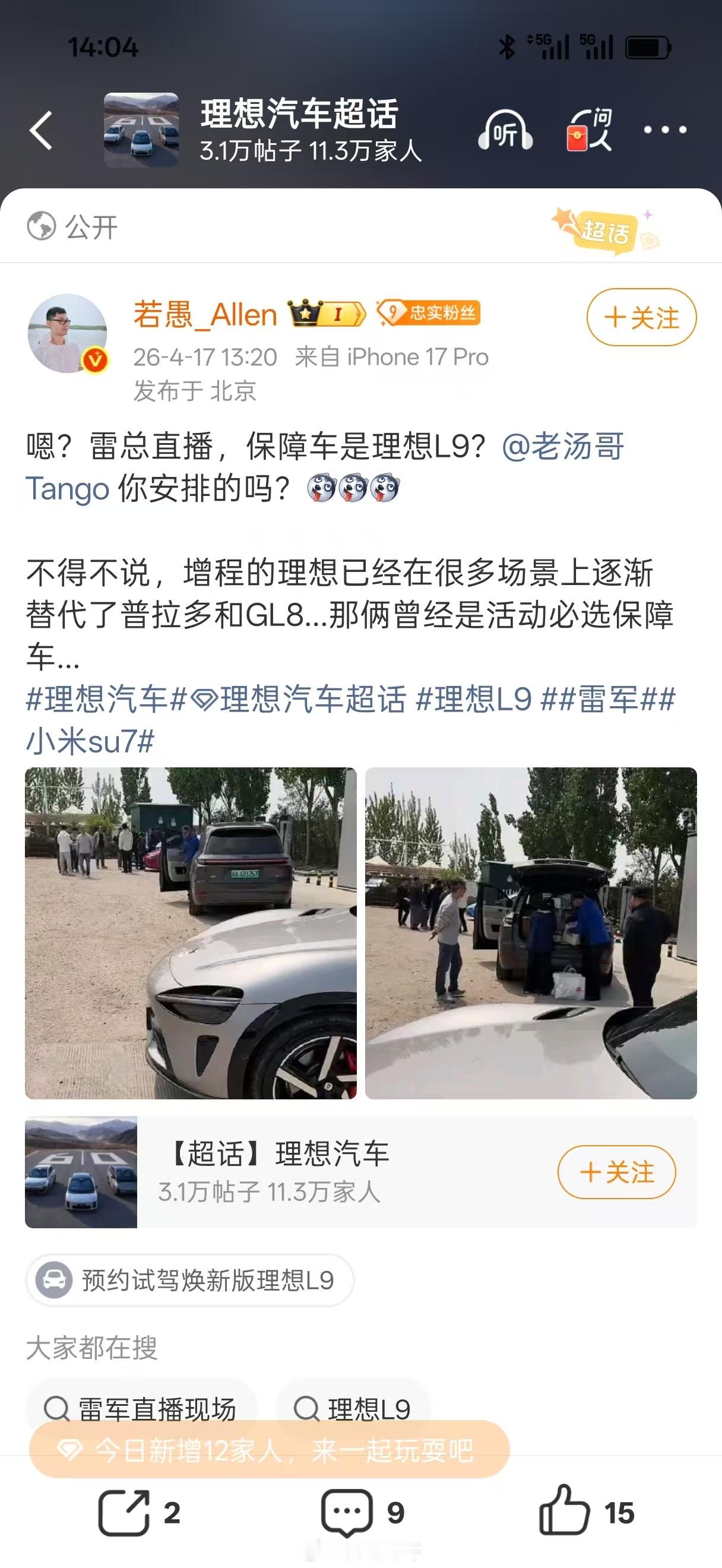 小米续航直播保障车是理想 L9从图片中可以看到,领头的是L9,押尾的是L8雷军说