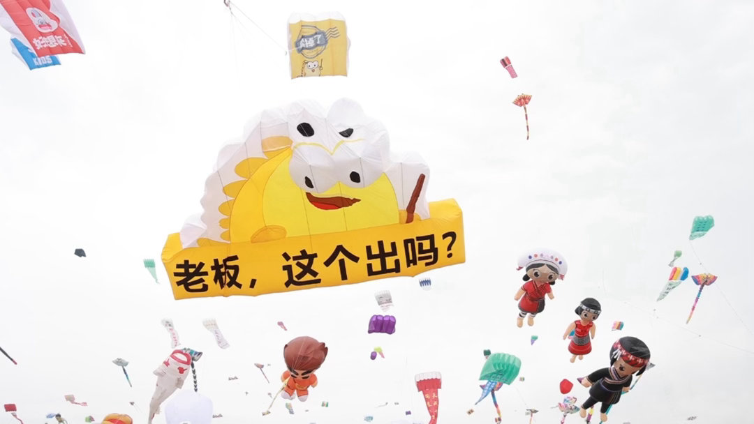 第一次见会搭讪的风筝第一次用社牛评价一个风筝救命!潍坊风筝节这只黄澄澄的显眼包也太会了!追着别的风筝疯狂贴贴,还挂着“老板,这个出吗?”的横幅,别人放风筝是休闲,你是纯想来进货的