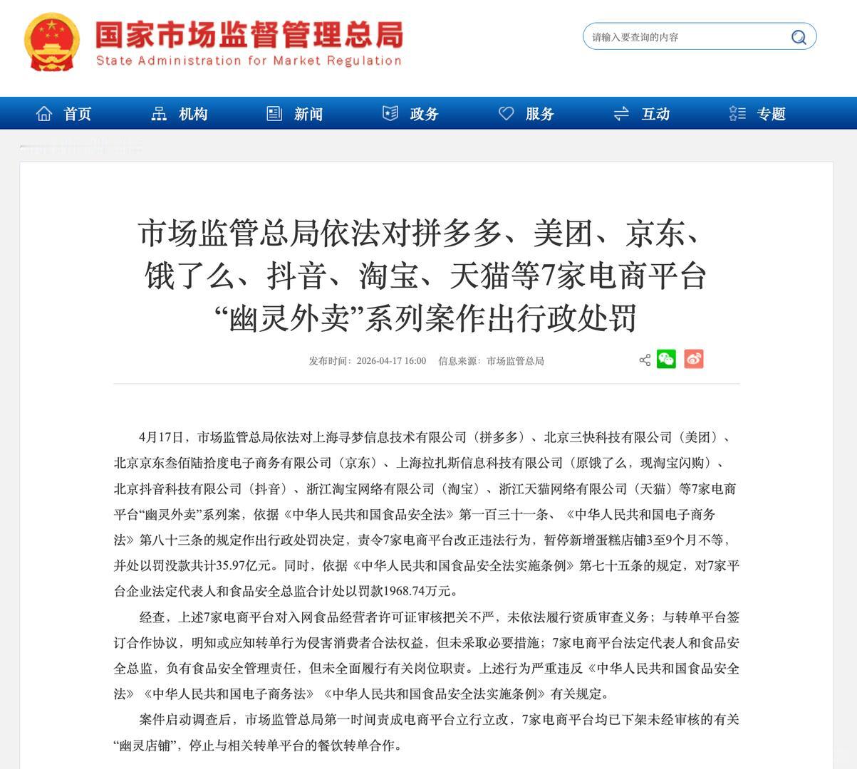 拼多多美团京东淘天抖音被罚35亿 终于开始注重食品安全,打击这些幽灵外卖,监管本
