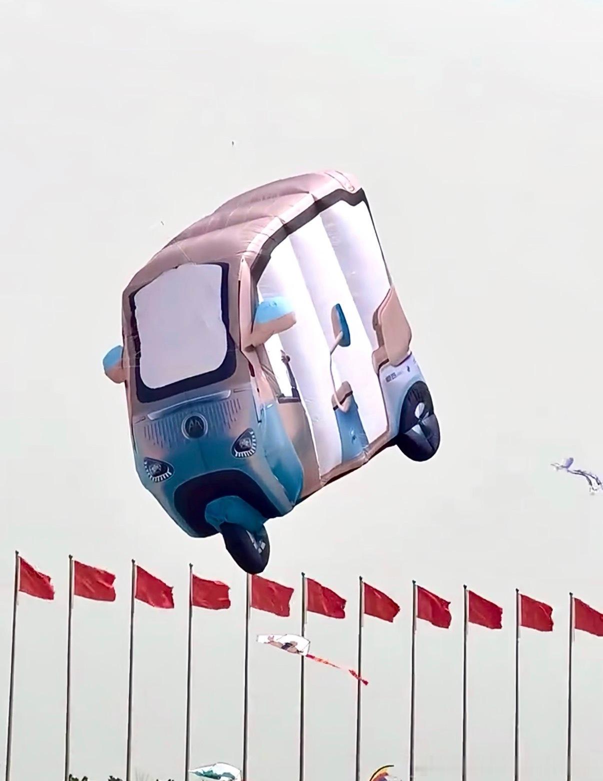 第一次见会搭讪的风筝天上这只风筝也太会社交了,全程主动凑到别的风筝旁边贴贴,活泼