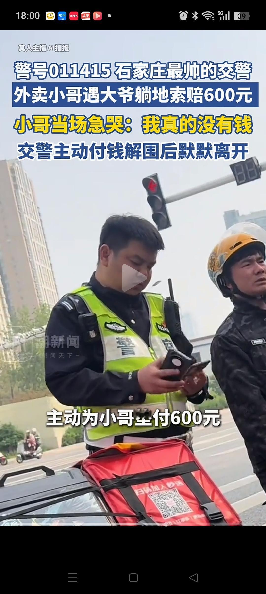 而外卖小哥又因为女友住院,拿不出老人提出的600块钱。所以这位交警才帮忙协调,降低到了200块钱。