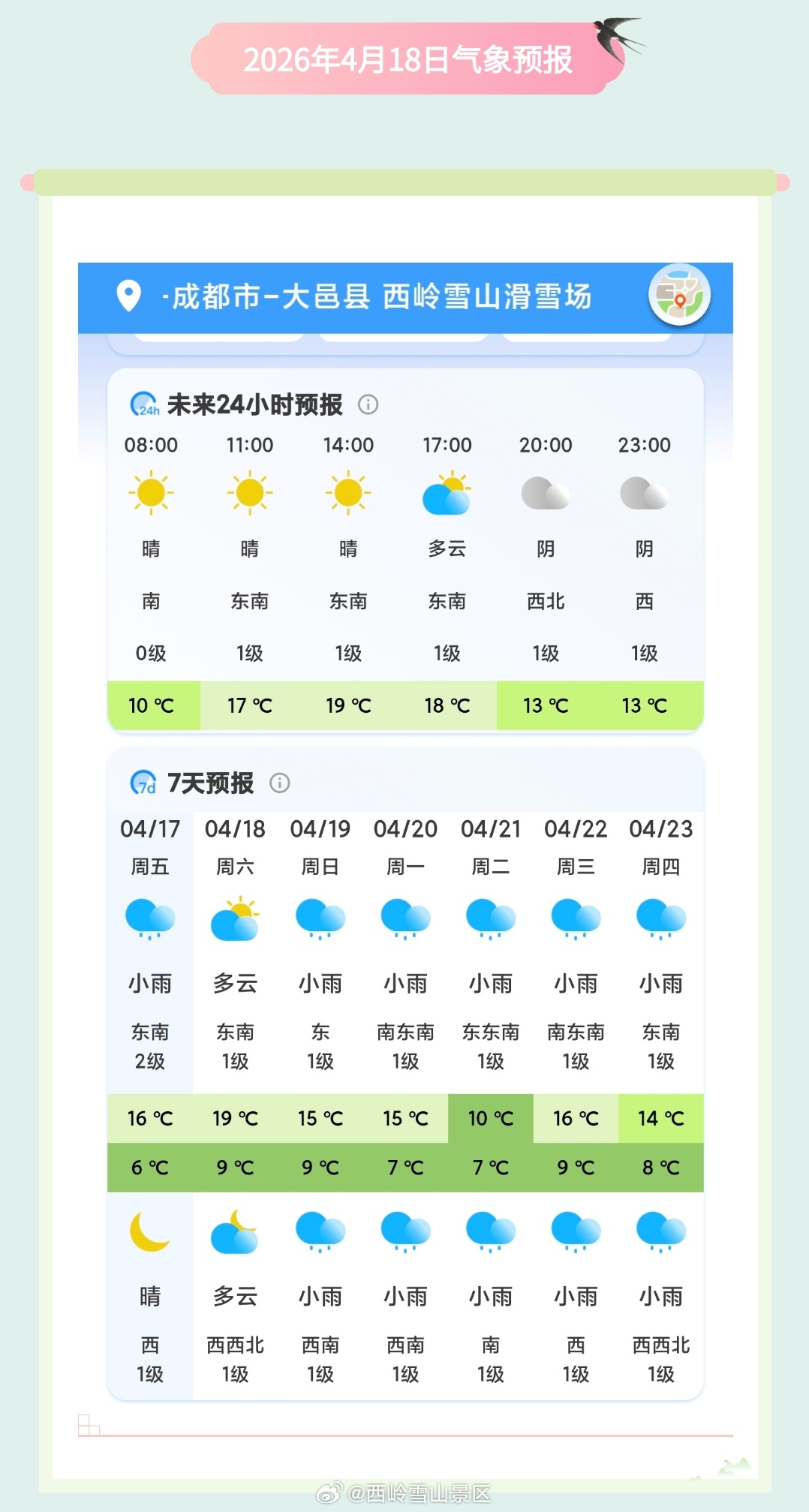 西岭雪山4月18日(周六)气象预报#西岭雪山 #