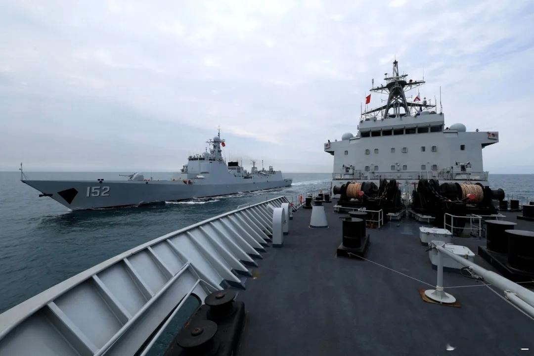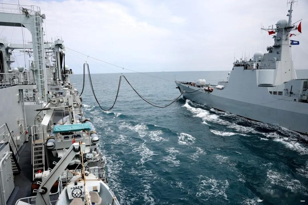 152济南舰进行横向、纵向航行补给:052C五号舰