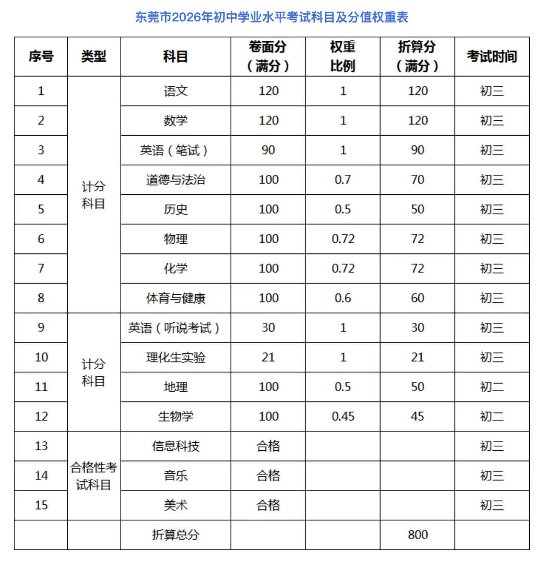 根据《东莞市教育局关于印发的通知》(东教育规〔2025〕6号),2026年初二级学生参加地理、生物学考试的考试结果以等级加分数呈现,根据考试成绩分A、B、C、D、E五个等级,不作为2027年中考录取计分科目。