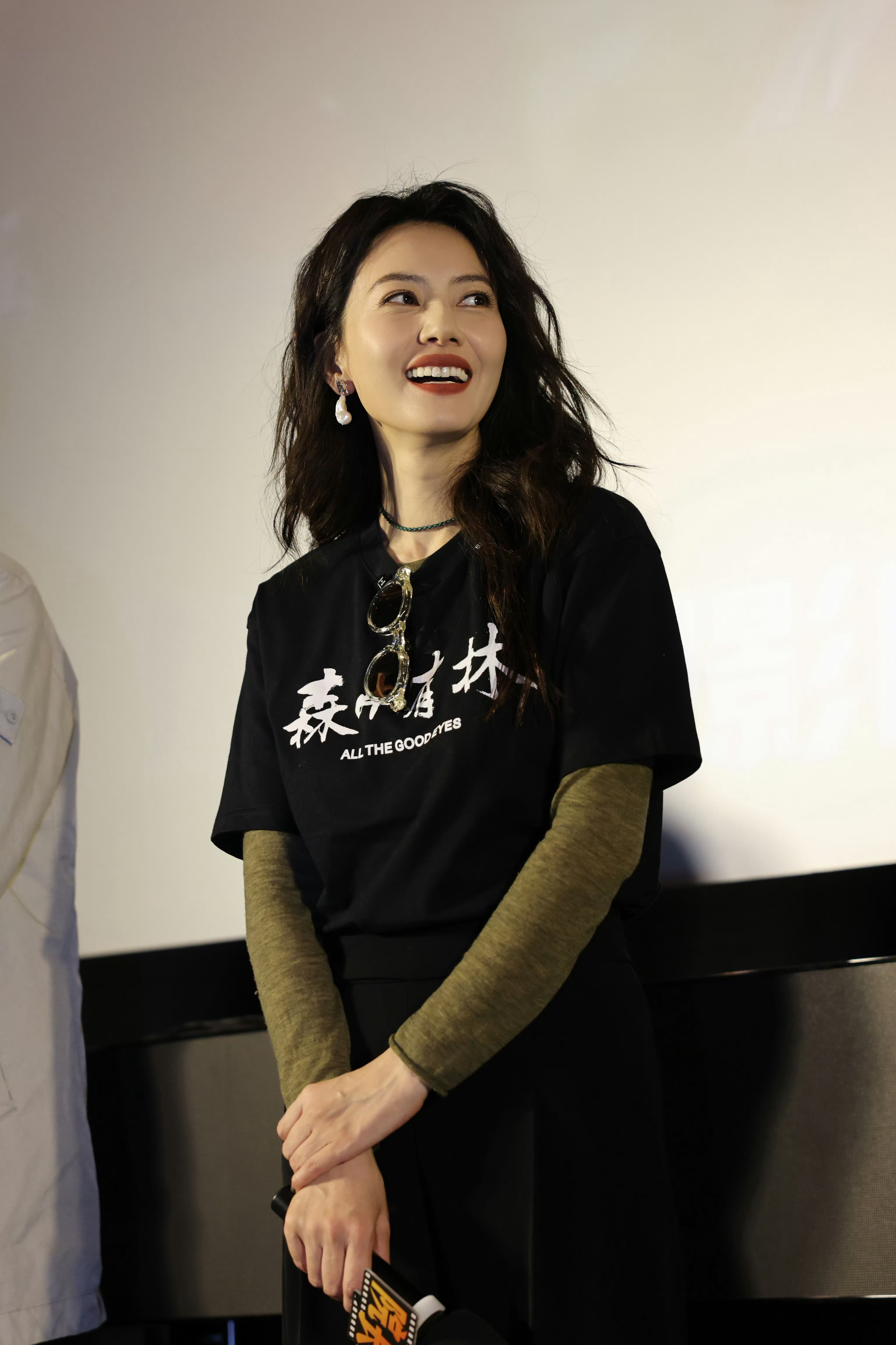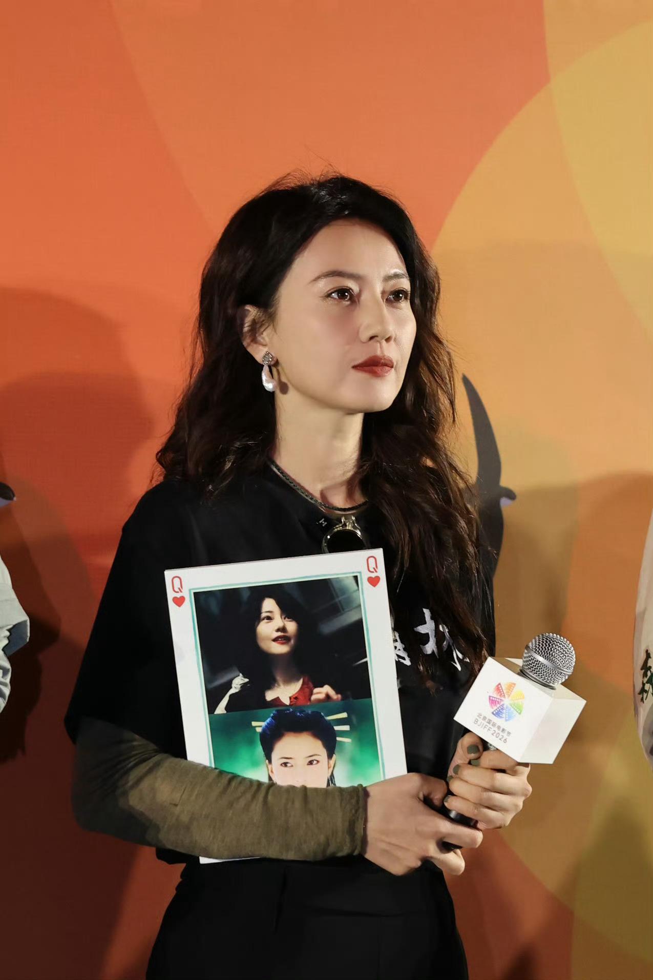 路演现场,她笑起来明媚动人,可一想到她在电影里为了护子不择手段的狠劲,就觉得张力十足。这种被生活磋磨、被仇恨裹挟的破碎感,她演得也太到位了!