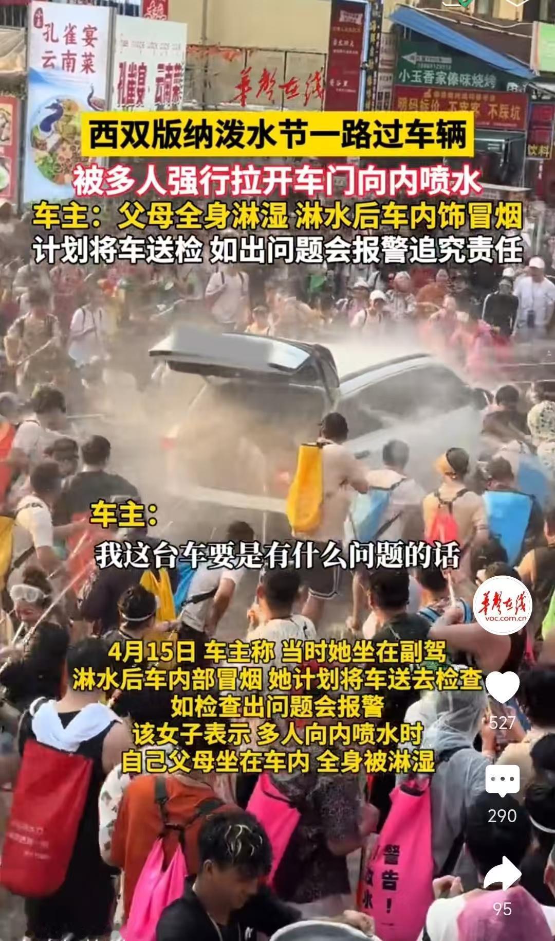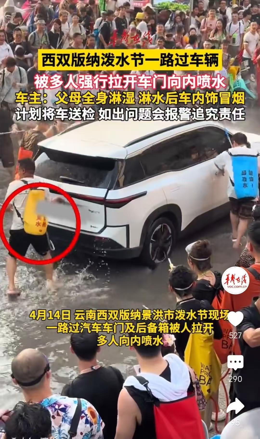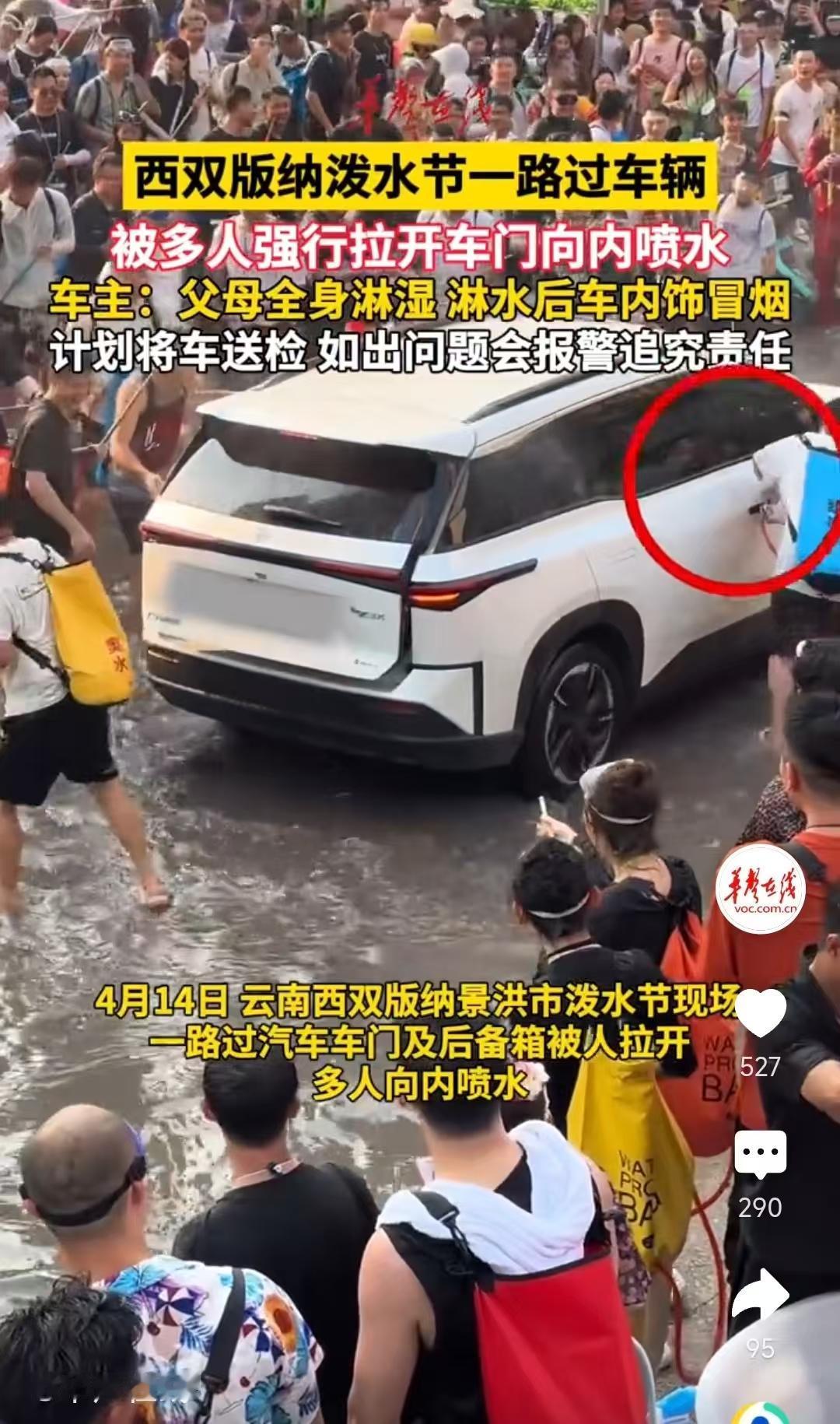 云南西双版纳泼水节,这两个人彻底闯大祸了! 车主魏先生刚买的新能源汽车,从辽宁