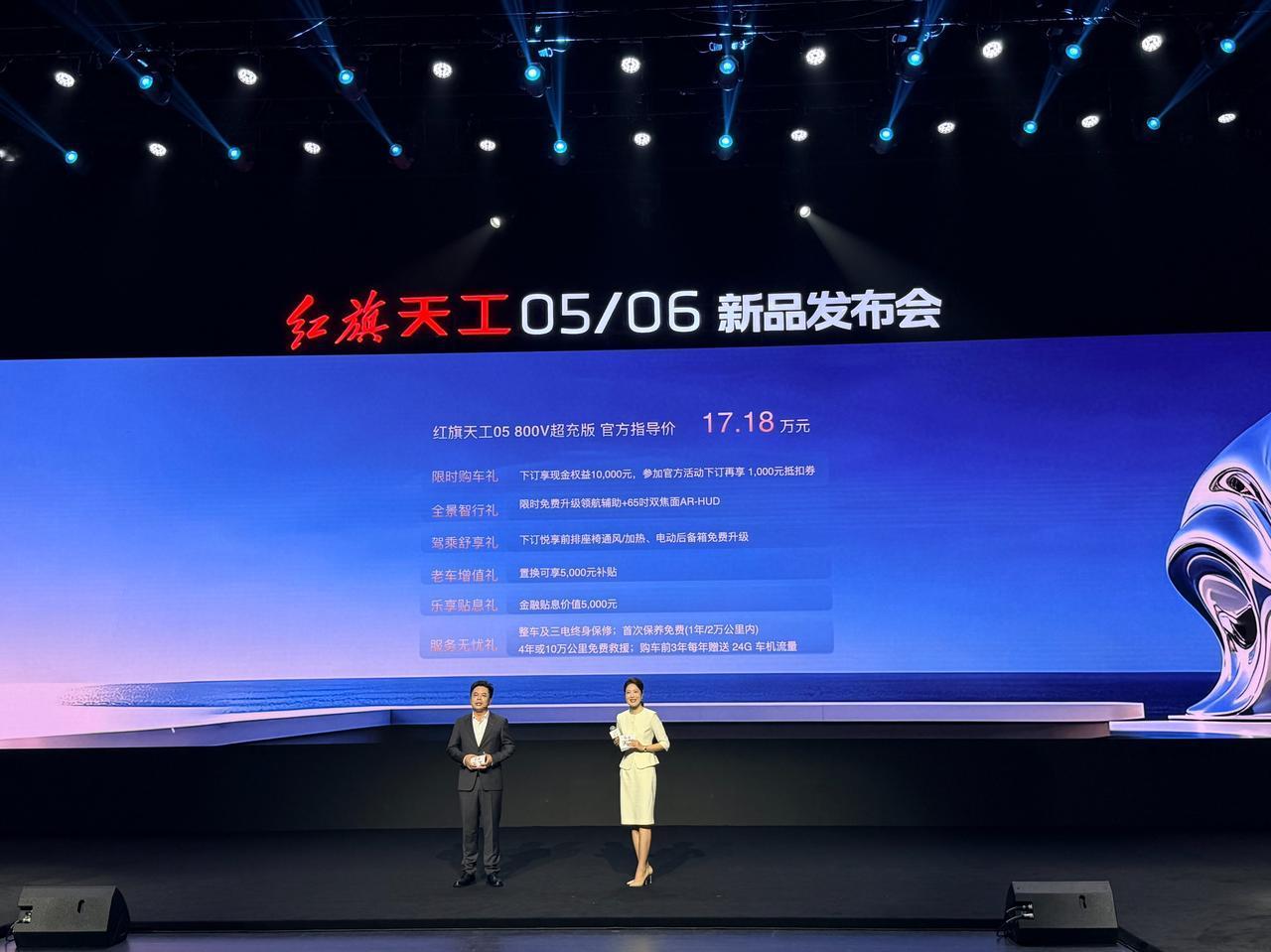 品牌同步推出首任车主三电终身质保、置换补贴等多重权益。性能、续航、智能、安全全面拉满,红旗天工05/06能否成为20万级以内纯电市场最强选择?