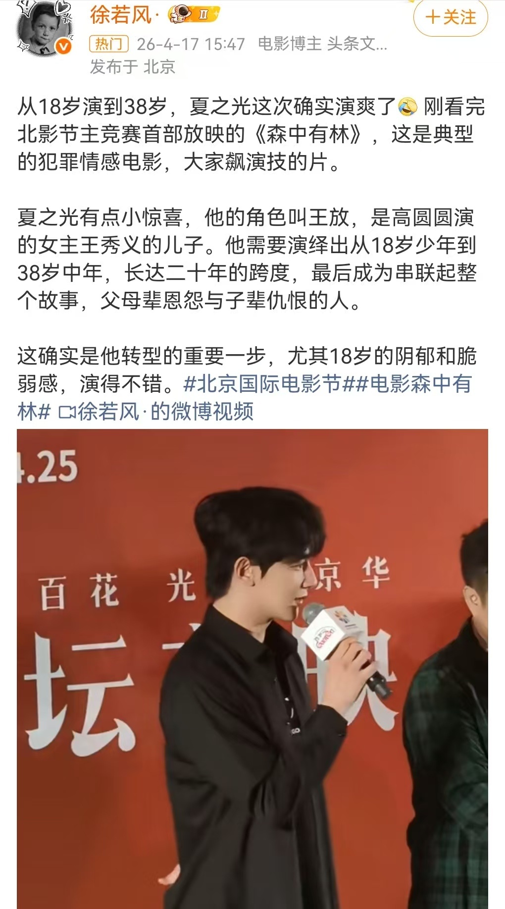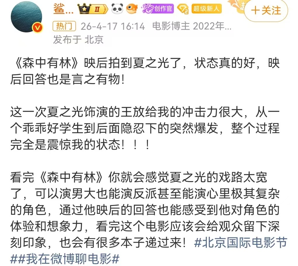 夏之光新电影观影口碑夏之光森中有林repo,都是影评人的夸奖,好争气啊哥哥夏之光