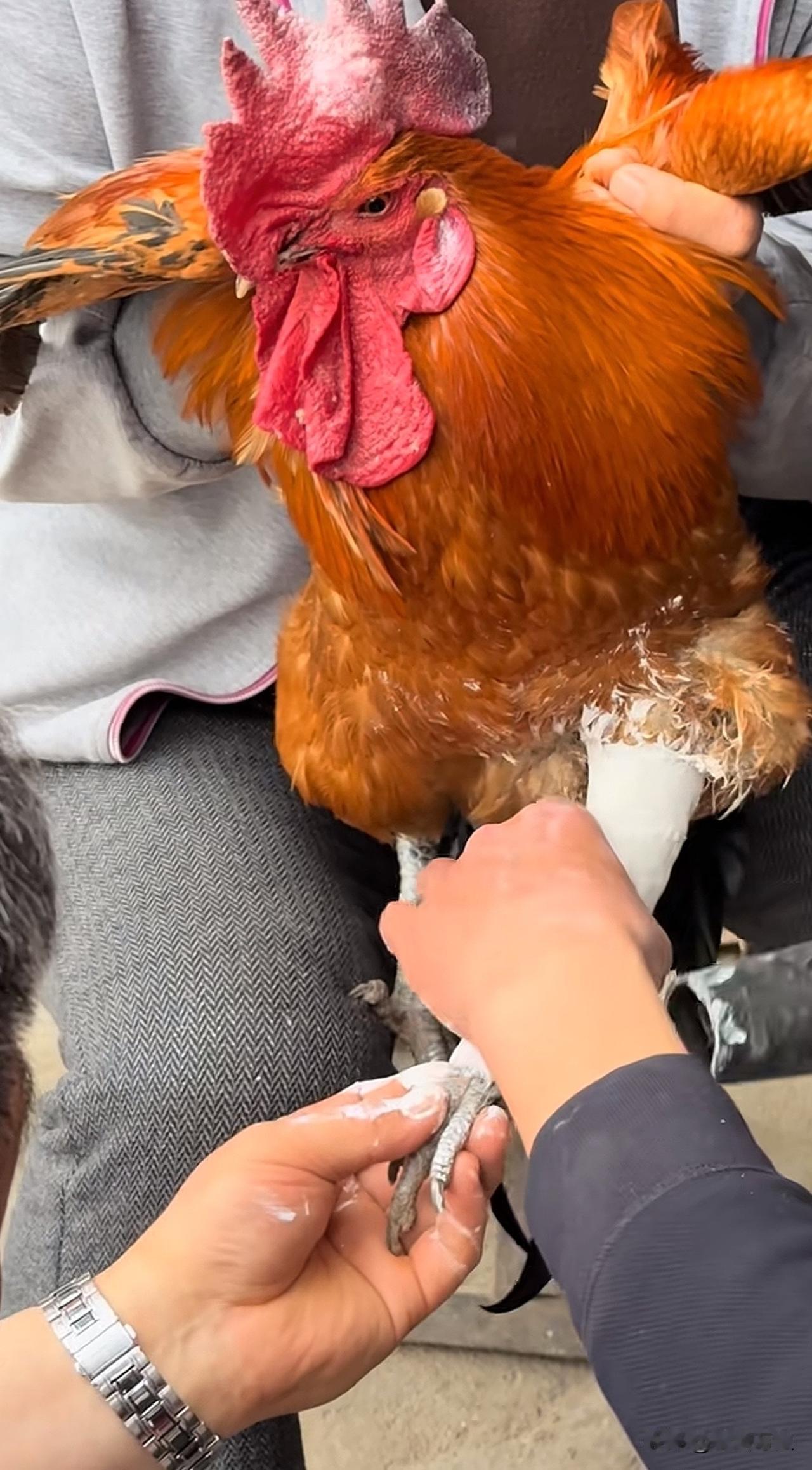 谁见过给鸡打石膏的[呲牙]俺爹把俺妈的小宝贝腿揍断了⋯.然后就发生了眼前这一幕宝