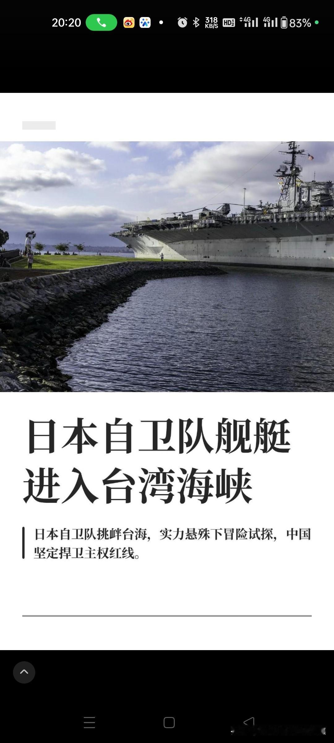 关键总结:日本此次挑衅是政治野心与军事冒险的结合,但中方“依法依规处置”的冷静回应背后,是绝对实力支撑的底线思维。台海红线不容试探,日方若执意玩火,终将引火烧身。外军大舰强闯海峡 我军舰缠斗驱离