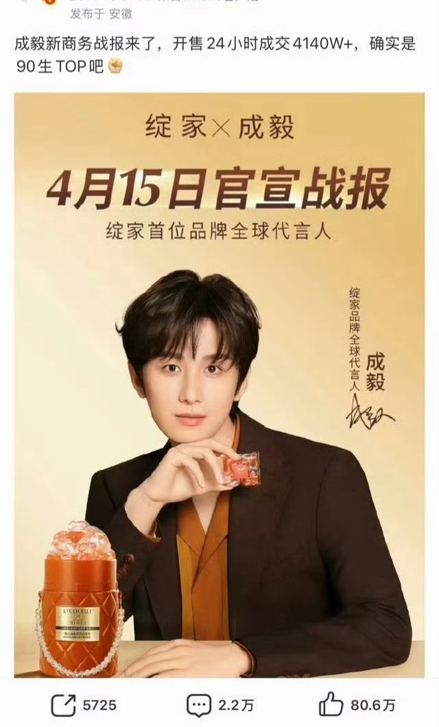 🍉成毅是不是内娱最顶了 他的代言战报有80万👍