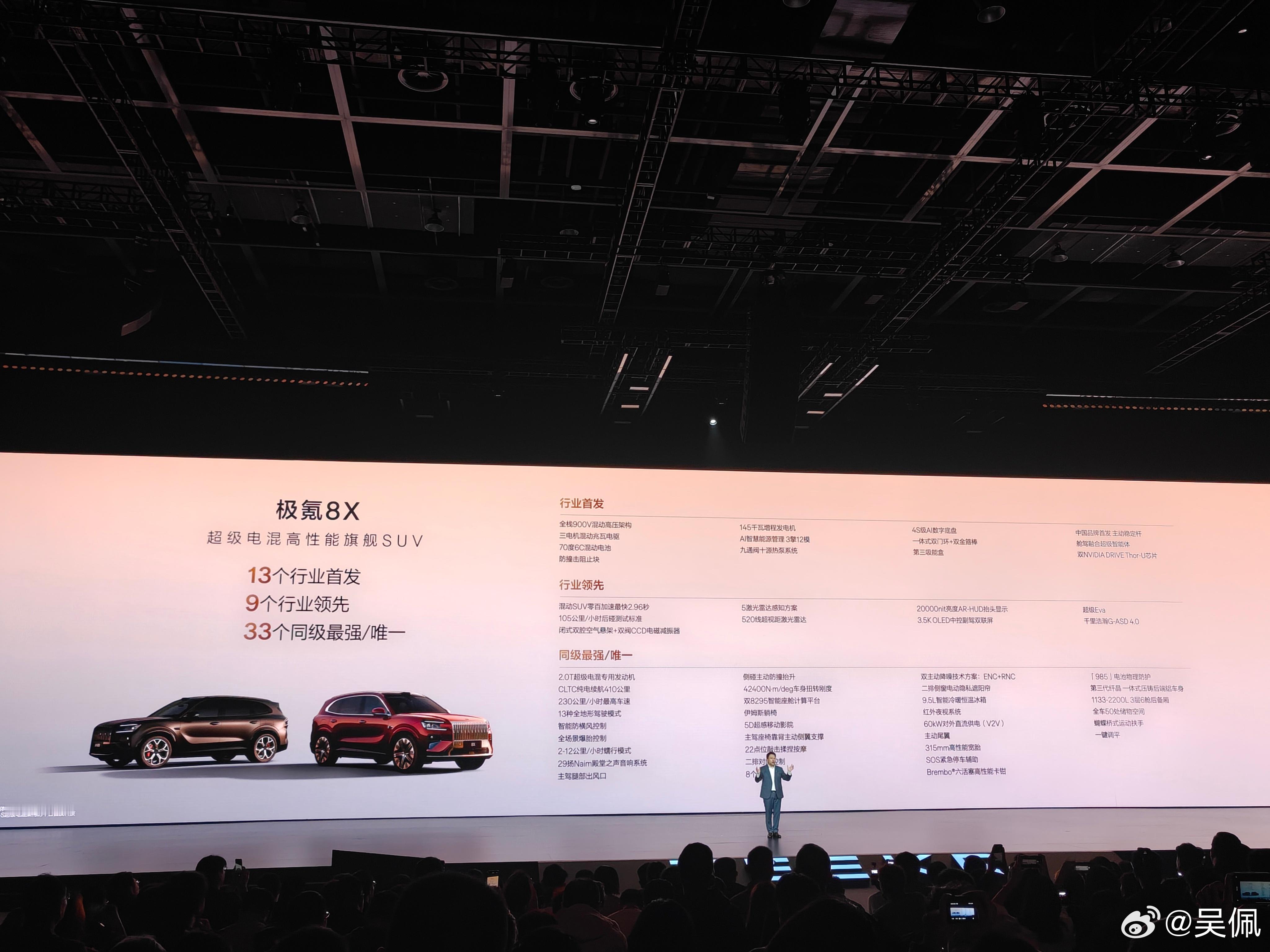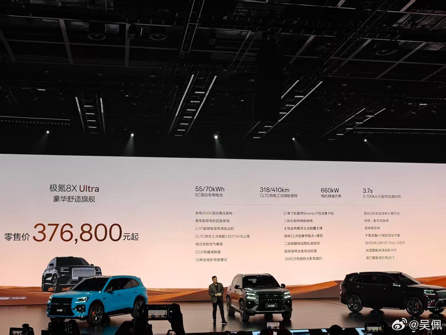 限时32.98万起,极氪8X正式上市。SEP浩瀚超级电混架构900V高压平台,曜影版三电机功率1400匹,零百2.96秒,叫板宝马X5 M,再给你70度6C超快充电池,纯电续航410km,闭式双腔空悬+双阀CCD+主动稳定杆,还有5颗激光雷达的千里浩瀚G-ASD智驾,这一大堆,卖这个价,你觉得OK吗?请用___________四个字评价极氪8X极氪8X新公路之王新公路之王极氪8X正式上市极氪8X首发舱驾融合超级智能体