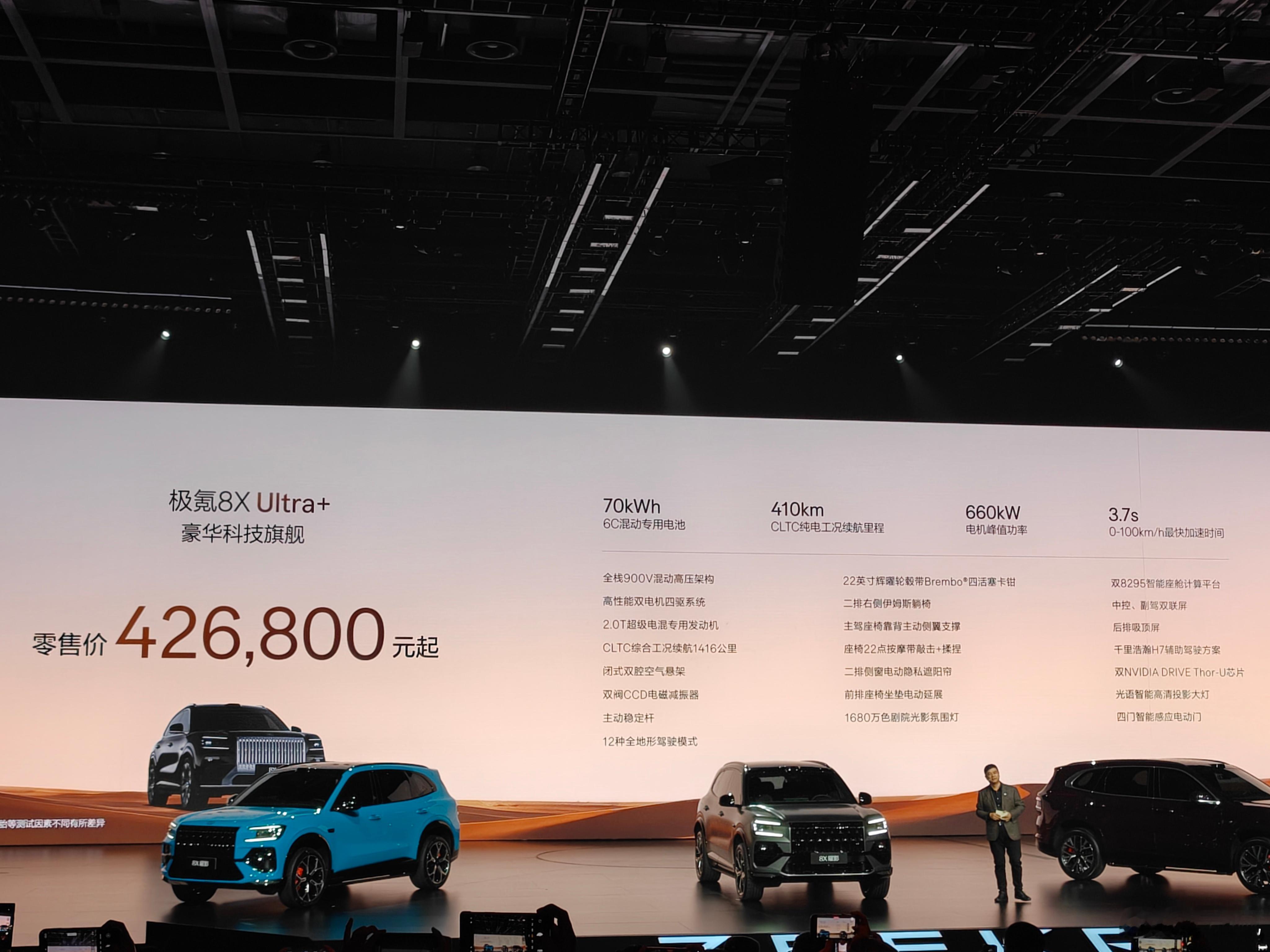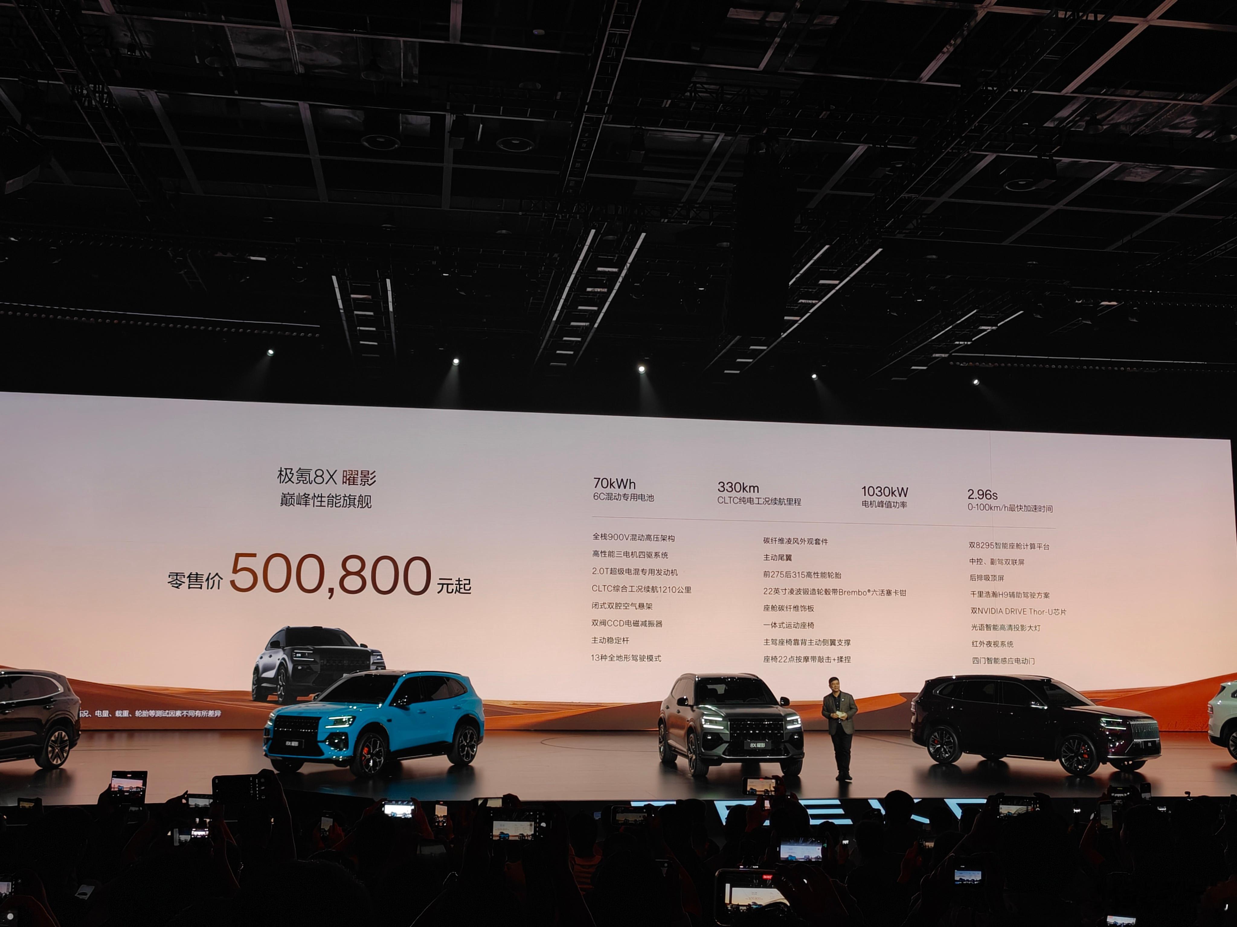 限时32.98万起,极氪8X正式上市。SEP浩瀚超级电混架构900V高压平台,曜