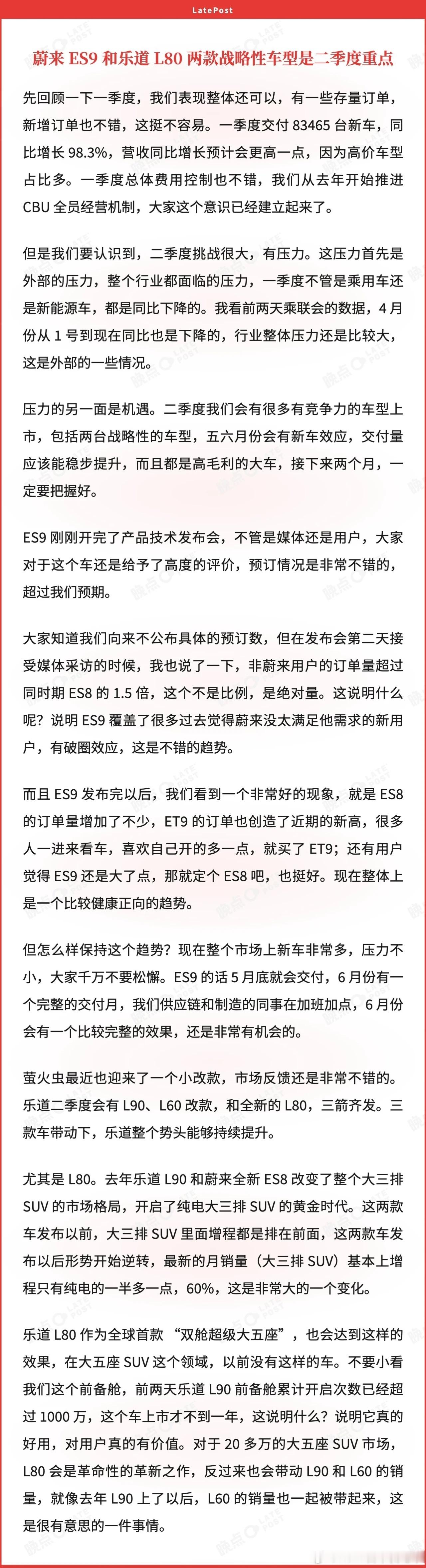 ES9发布后非蔚来车主订单是ES8当时的1.5倍,同时ES9的热度吸引了大量客户,有需求的就买了ET9,觉得ES9太大就下定ES8,整体上是一个健康向上的趋势