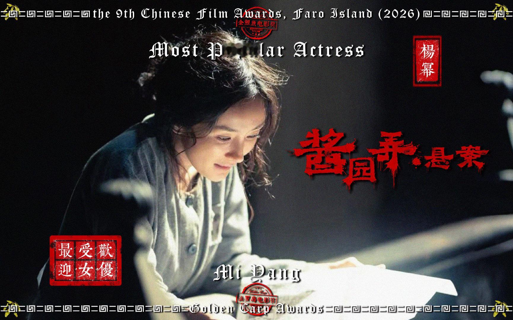 恭喜演员获得2026年第9届法罗岛金鲤鱼电影奖华语区【最受欢迎女演员】👏🎉杨