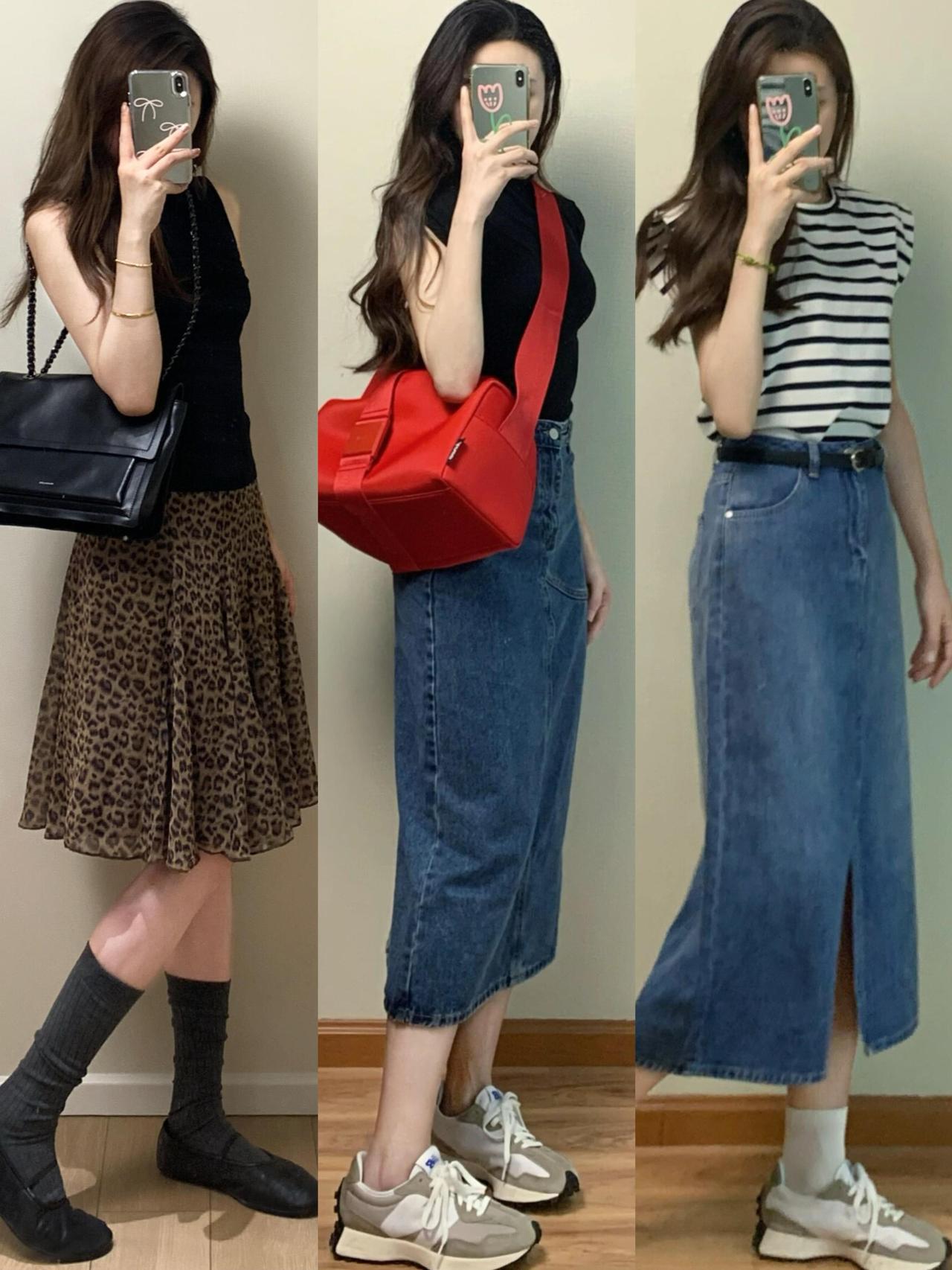 豹纹半裙、彩色印花裙和温柔蕾丝款各有韵味,运动鞋、芭蕾鞋或勃肯鞋适配不同风格,再用包包和袜子做细节点缀,不用费心搭配也能把韩系日常感拿捏得刚刚好。