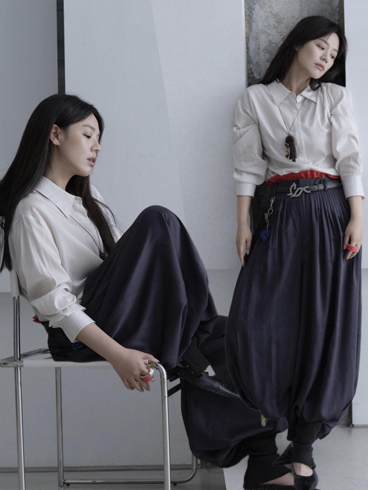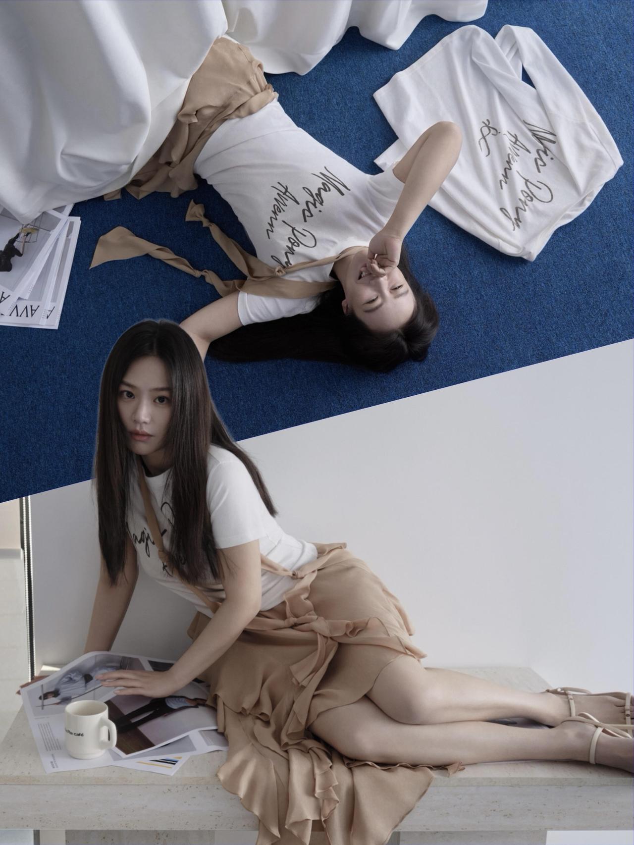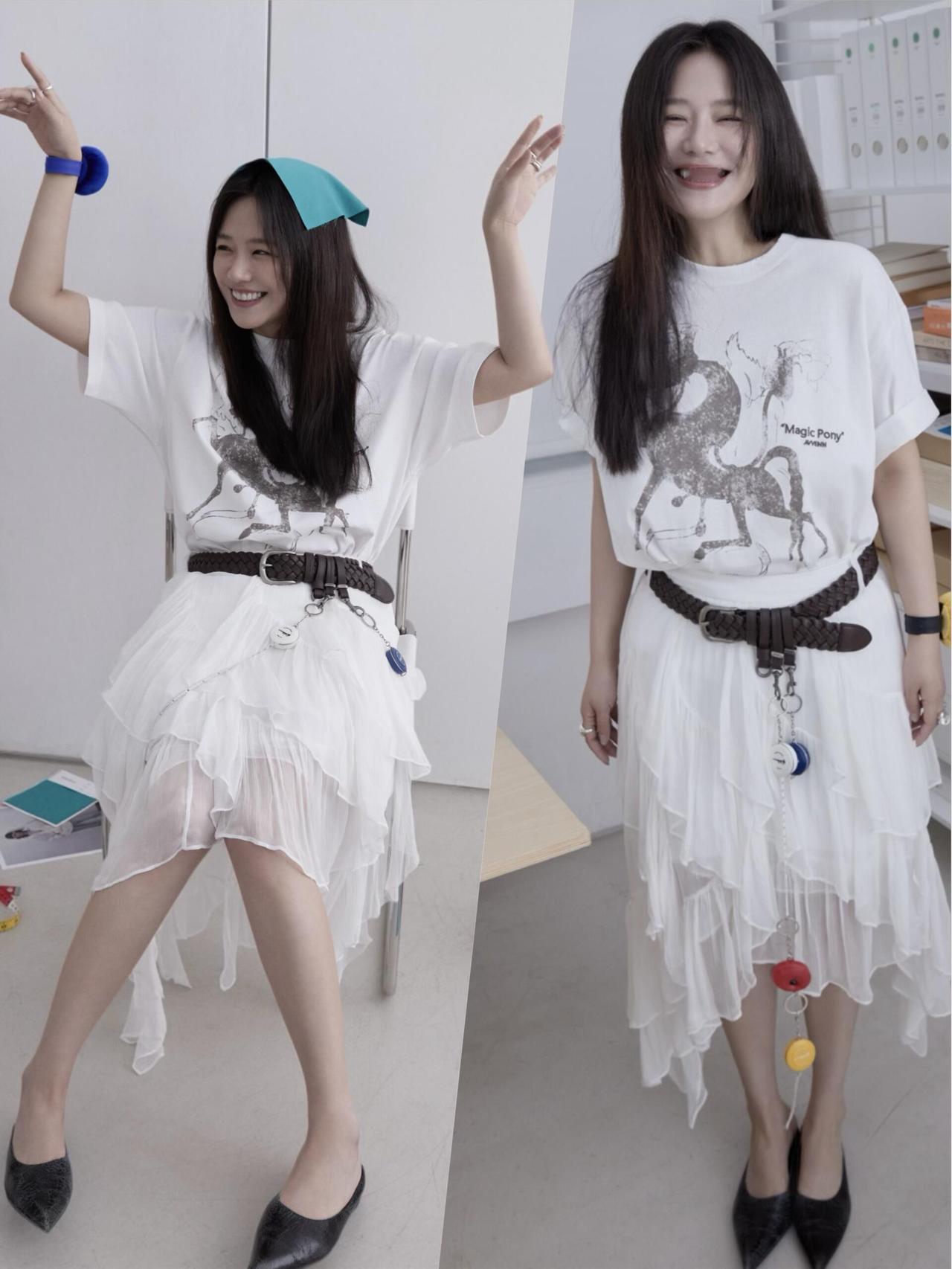 马思纯终于选对造型,这几套超美! 松弛文艺感拉满,浅白T恤配卡其纱裙温柔又灵动