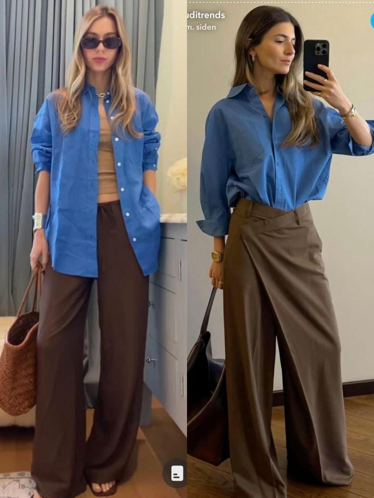 蓝色衬衫的时尚感被低估了,配阔腿裤很有气质!亮眼的克莱因蓝自带清爽气场,搭配黑色、白色、牛仔或棕色阔腿裤都很出彩,利落剪裁衬得人挺拔又松弛。