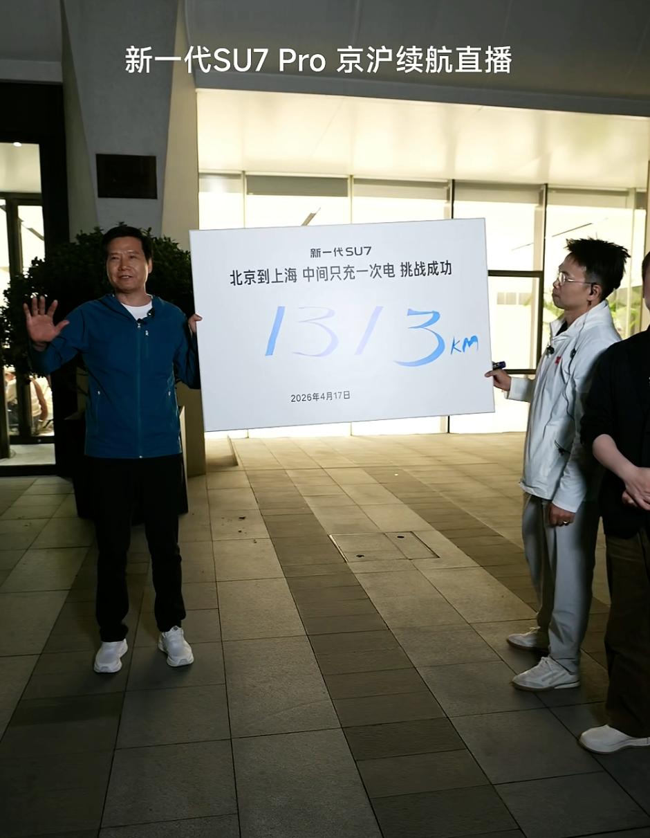 小米SU7京沪高速续航测试结果,实际跑了1313km,余电还有3%,预估续航还有