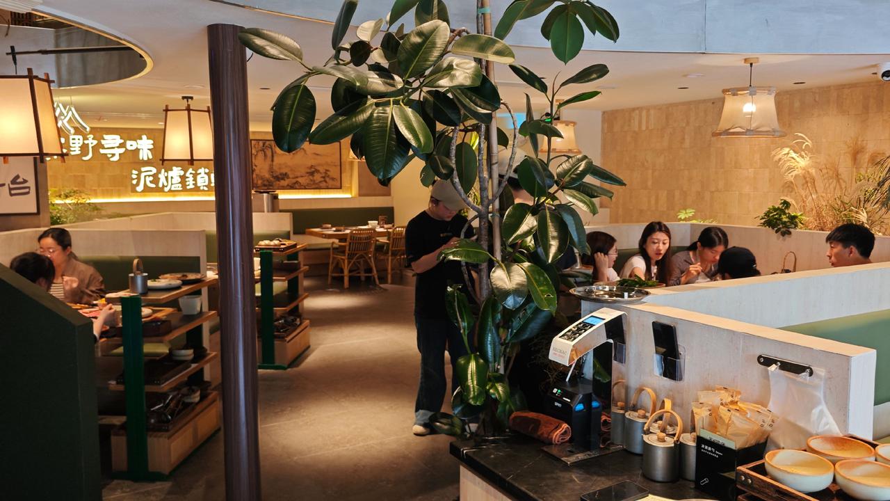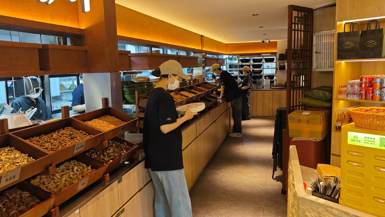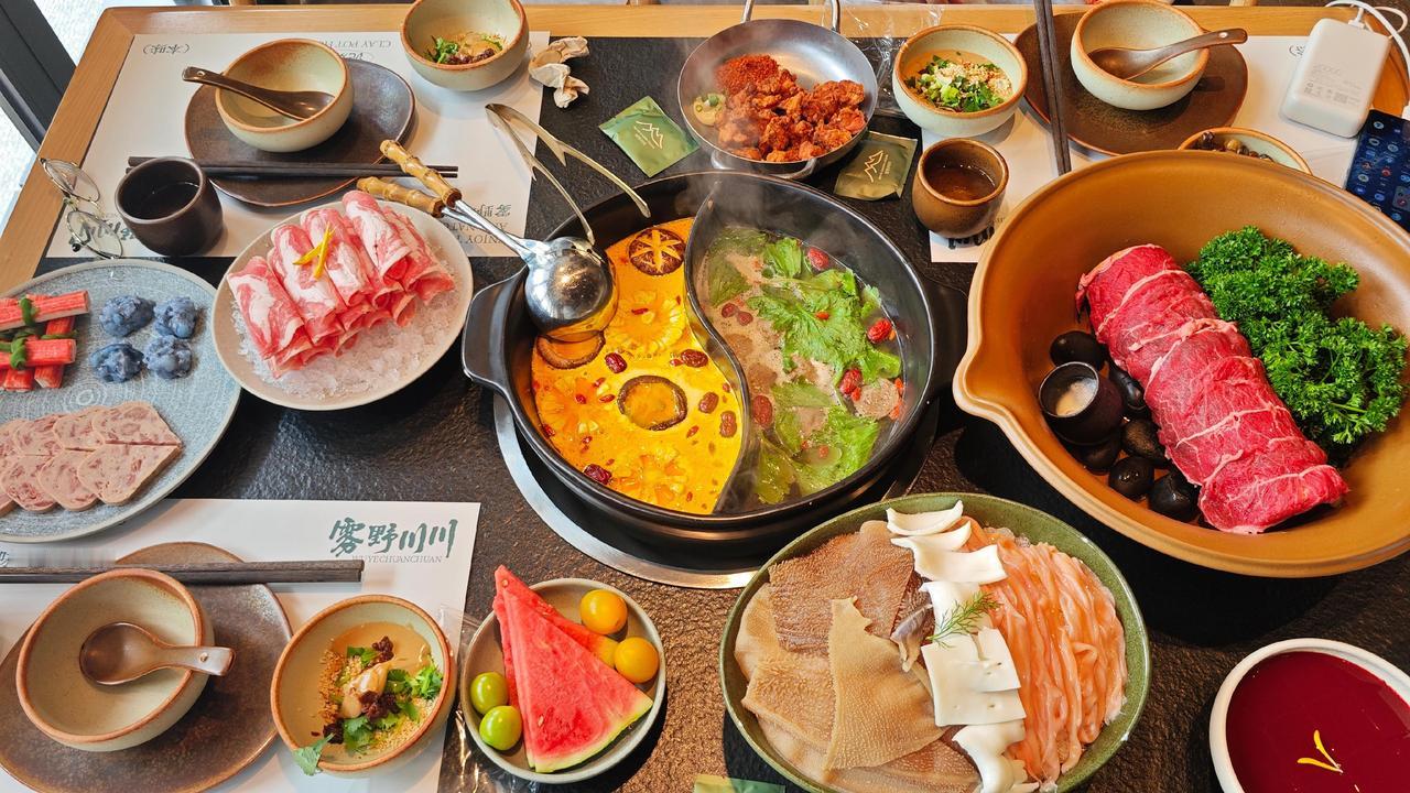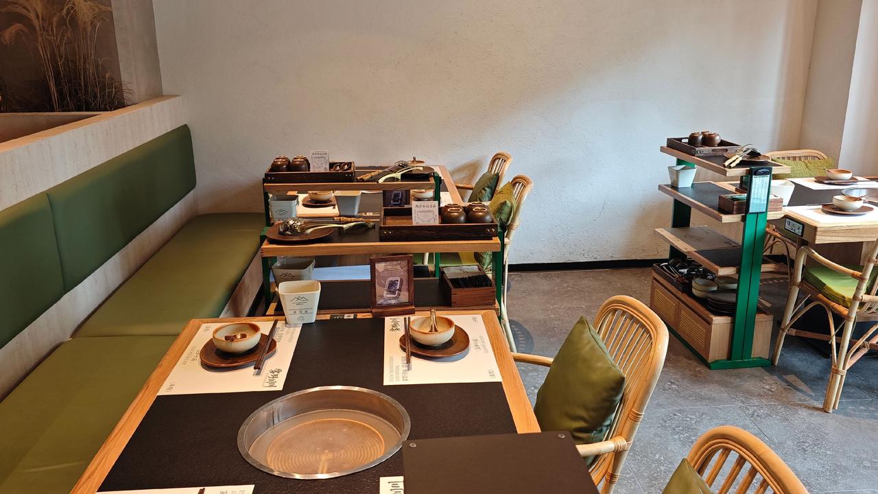 推门进去是三层的山系空间,泥炉、原木、山野装饰,没有过度精致的匠气,反倒像闯进深山里的食肆。店里人声鼎沸却不嘈杂,锅子里红油翻滚,香气裹着热气往上飘,每桌都围坐得热热闹闹,这就是火锅独有的魔力,不管是绸商还是寻常人,围炉而坐,便没了身份隔阂,只剩舌尖的欢愉。
