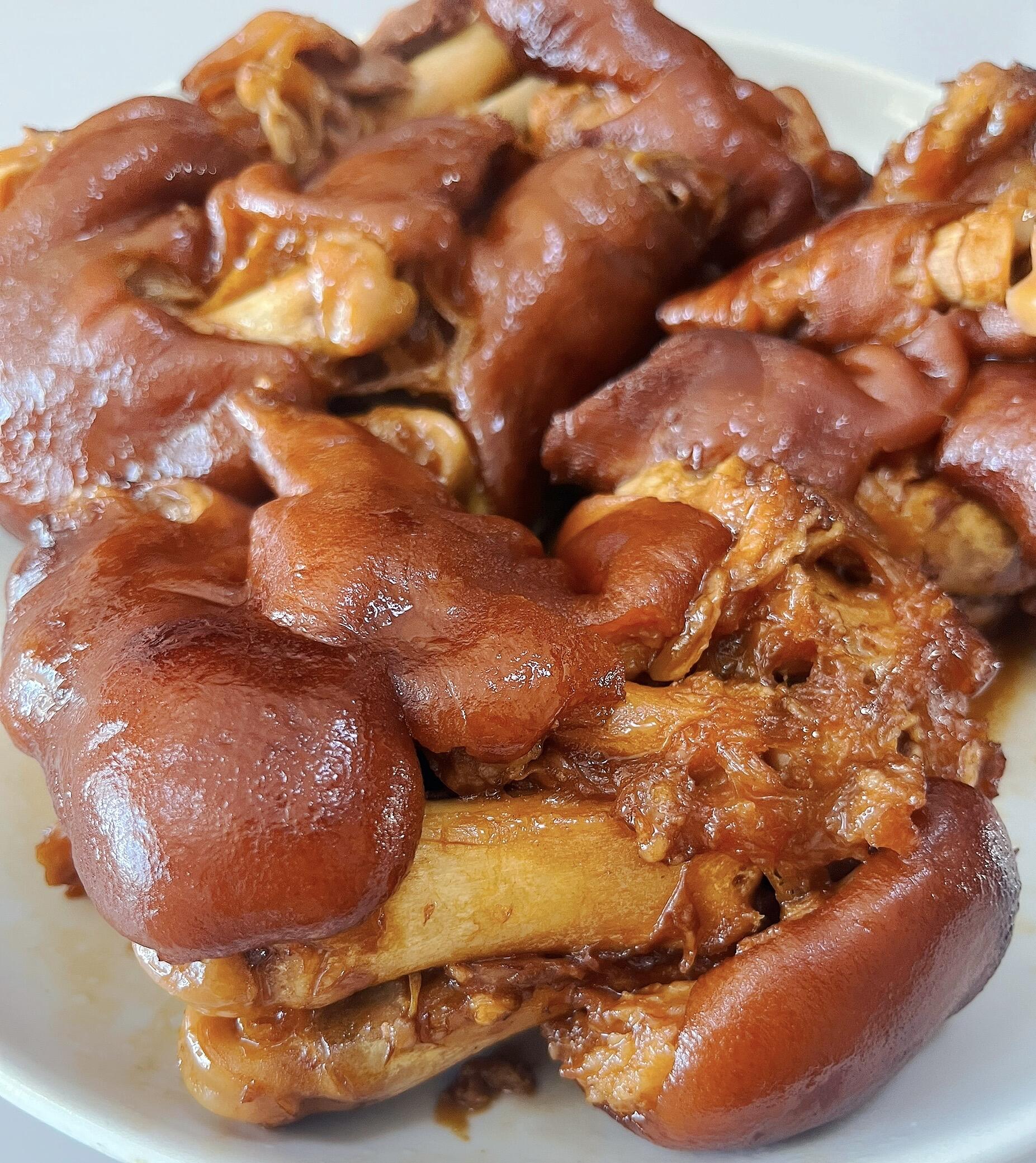 炖好的猪蹄,软烂脱骨,筋弹Q糯,每一丝肉都吸饱了卤汁,咸香入味,胶质满满,啃完连手指都要舔干净