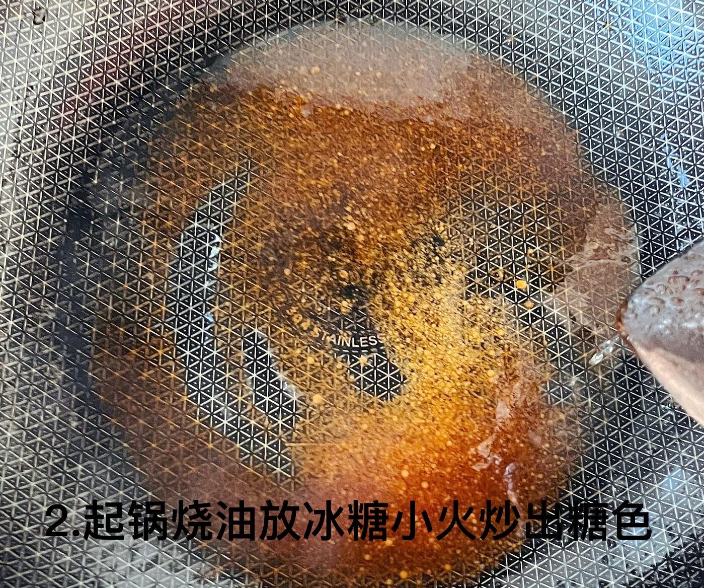 起锅烧油,放入冰糖,开小火慢慢炒,千万别着急