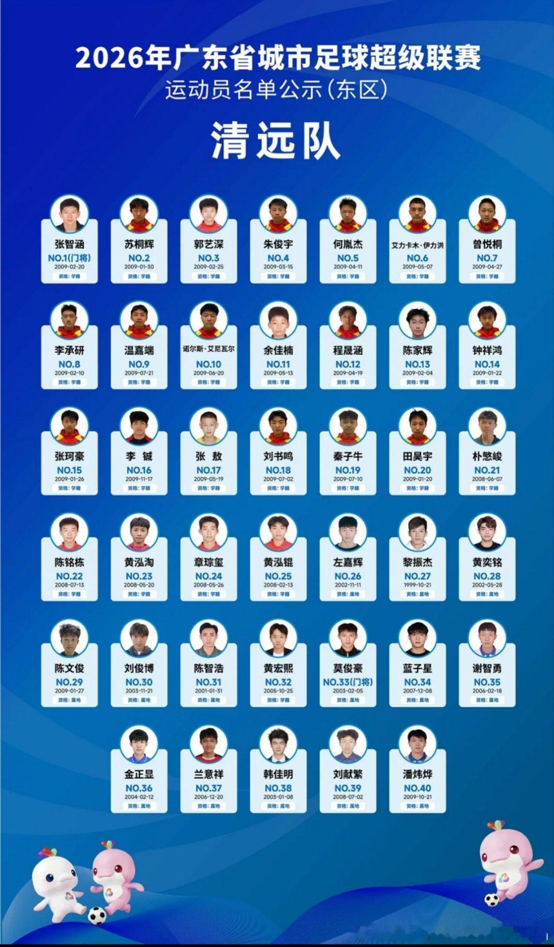恒大足校为班底本届粤超清远队,阵容以清远恒大足校08、09年龄段梯队为核心组建,搭配部分公开选拔球员,最终确定40人大名单恒大青训广东足球