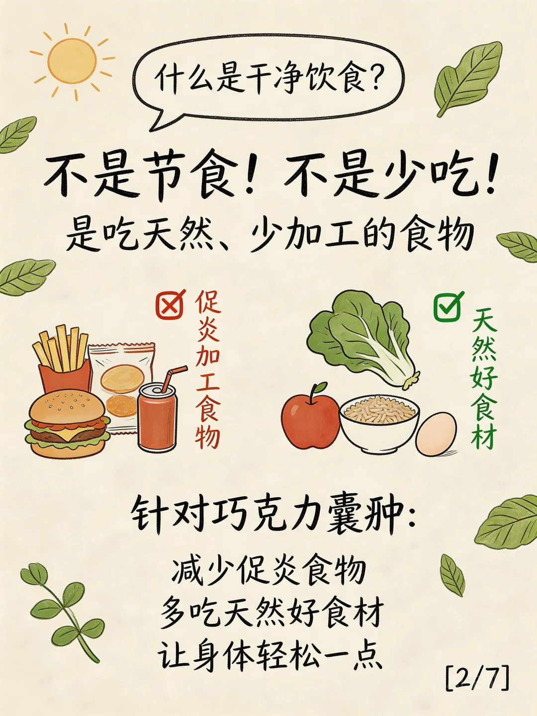 对巧囊跟内异症姐妹来说,就是减少促炎食物,多吃天然好食材,让身体轻松一点