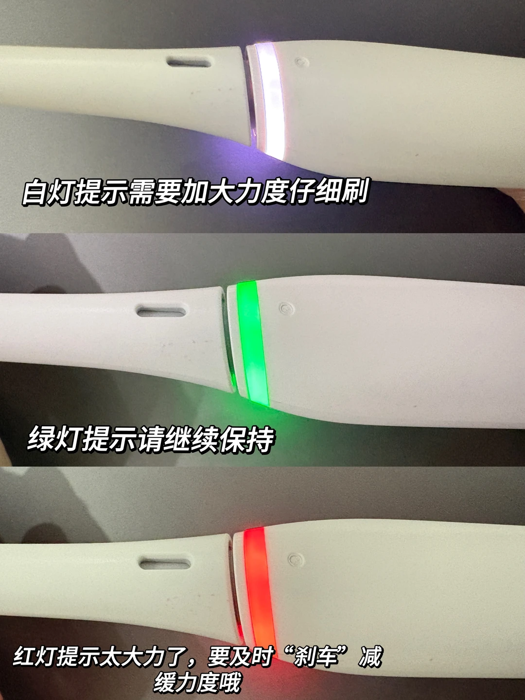 ✅我们正确的刷牙力道是不超过240N,而护龈灯会在力度过大的时候亮红灯提醒并降速保护牙齿牙龈,让我也可以更好的把握刷牙的力度,更好的保护牙齿。