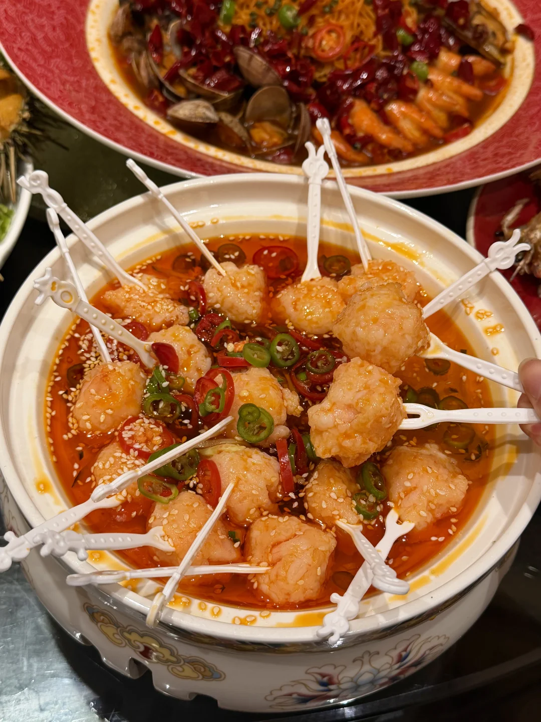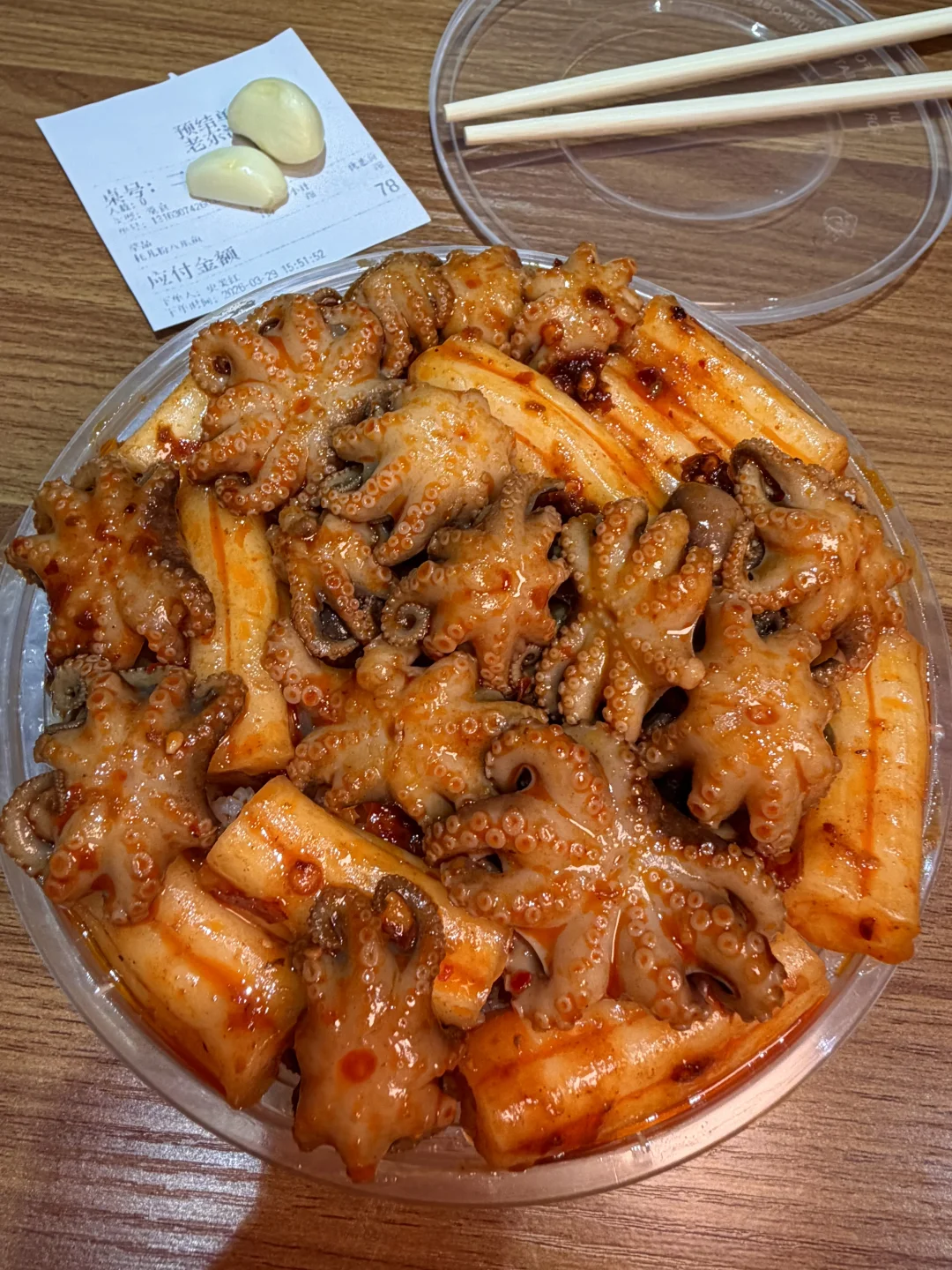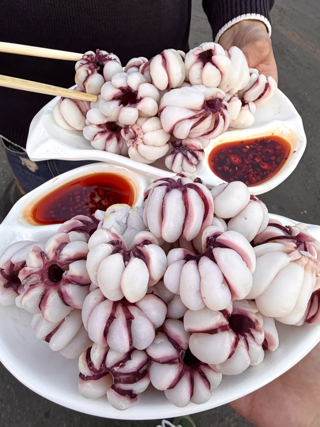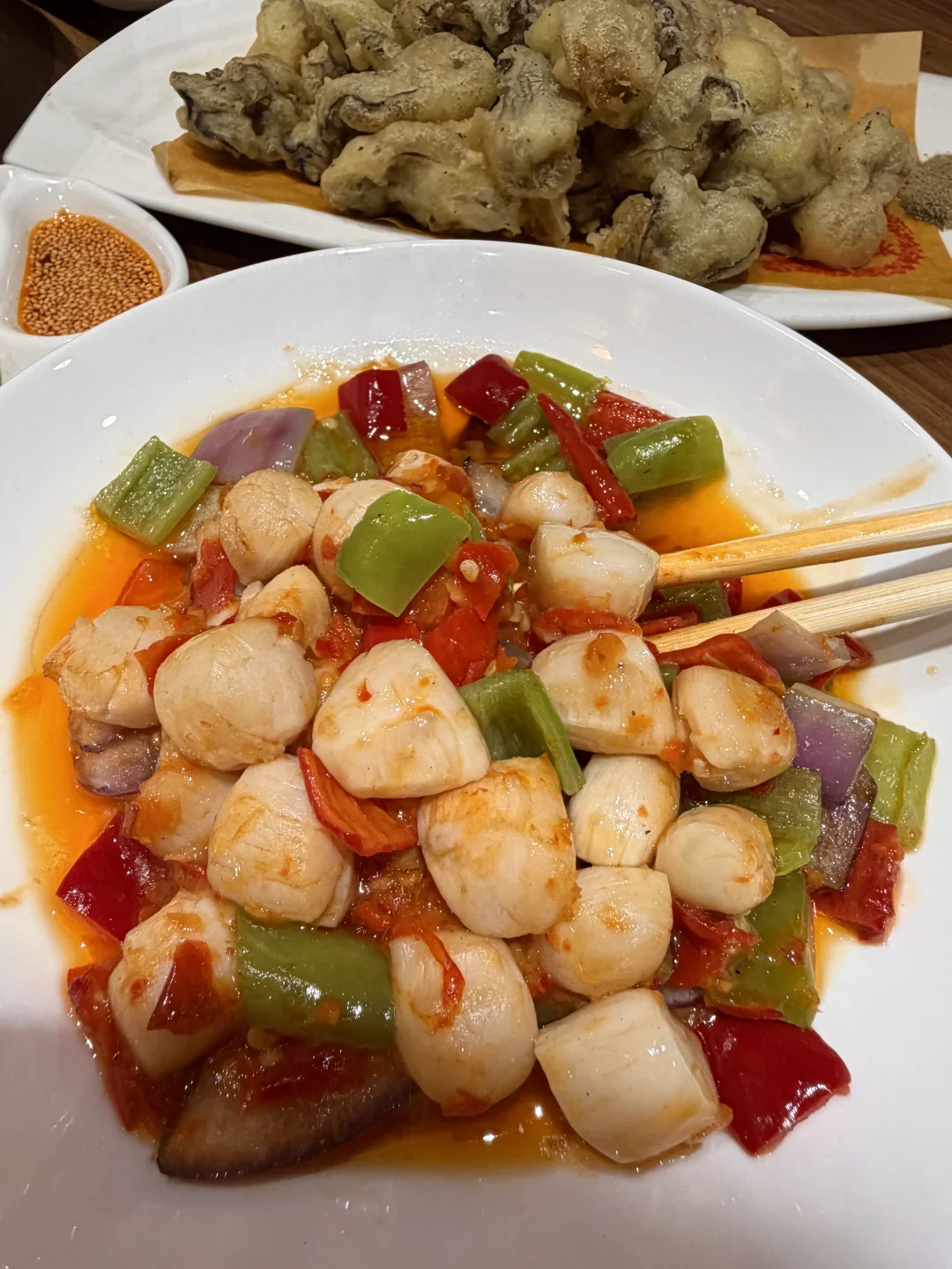 樱花鱿鱼头一次吃!比想象的好吃😋很新鲜,吃起来qq的!他家的生蚝个头拳头大,虾球香香辣辣,一口一个!