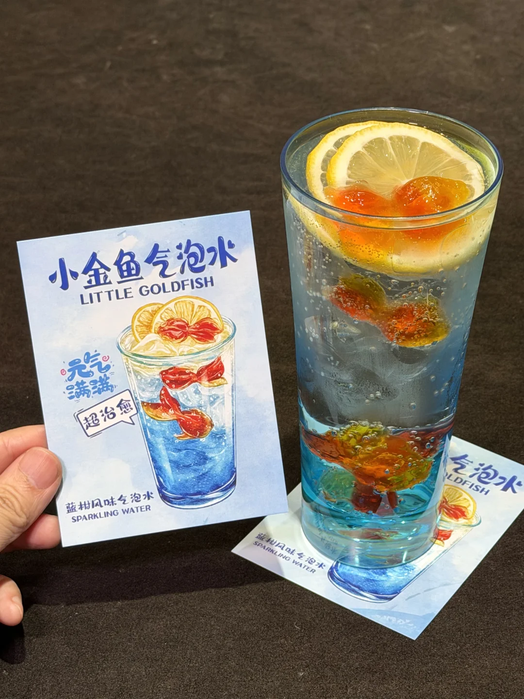 搭配的甜品雪花冰还有小金鱼气泡水也很适合这个季节!