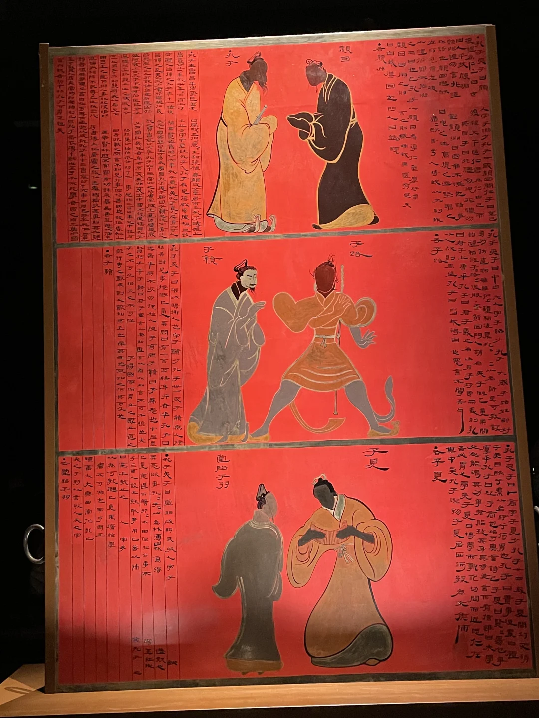 出土的青铜漆衣镜,背面刻有“孔子及其弟子画像”,是目前发现的最早的孔子画像实物。刘贺将孔子衣镜带入墓中,足以说明他尊儒崇礼,与《汉书》中“废礼谊”的指控直接相悖。
