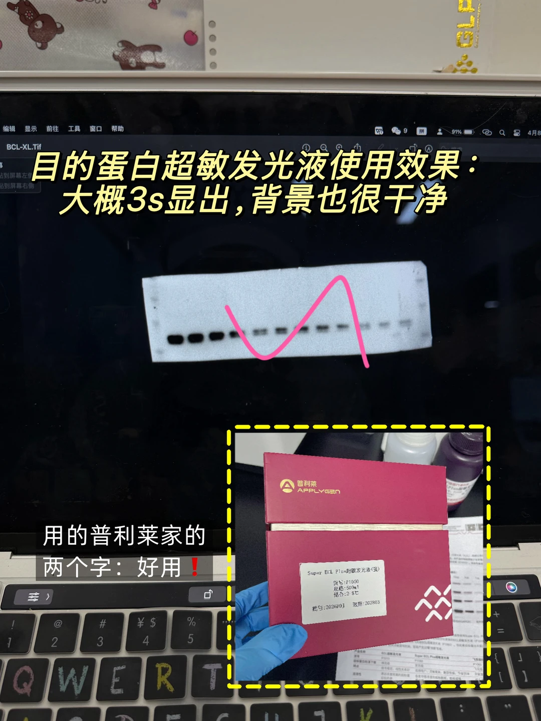 [向右R]方法:目的蛋白用超敏发光液,内参蛋白或者某些丰度很高的目的蛋白用普通发光液,我们用的是普利莱的ECL超敏发光液P1010,好用
