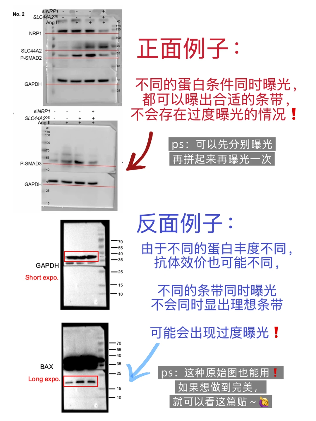 裁开的膜先分别曝光,用每个蛋白各自最合适的时间曝,这样曝出来的就很合适放到figure里,然后保存原始数据。