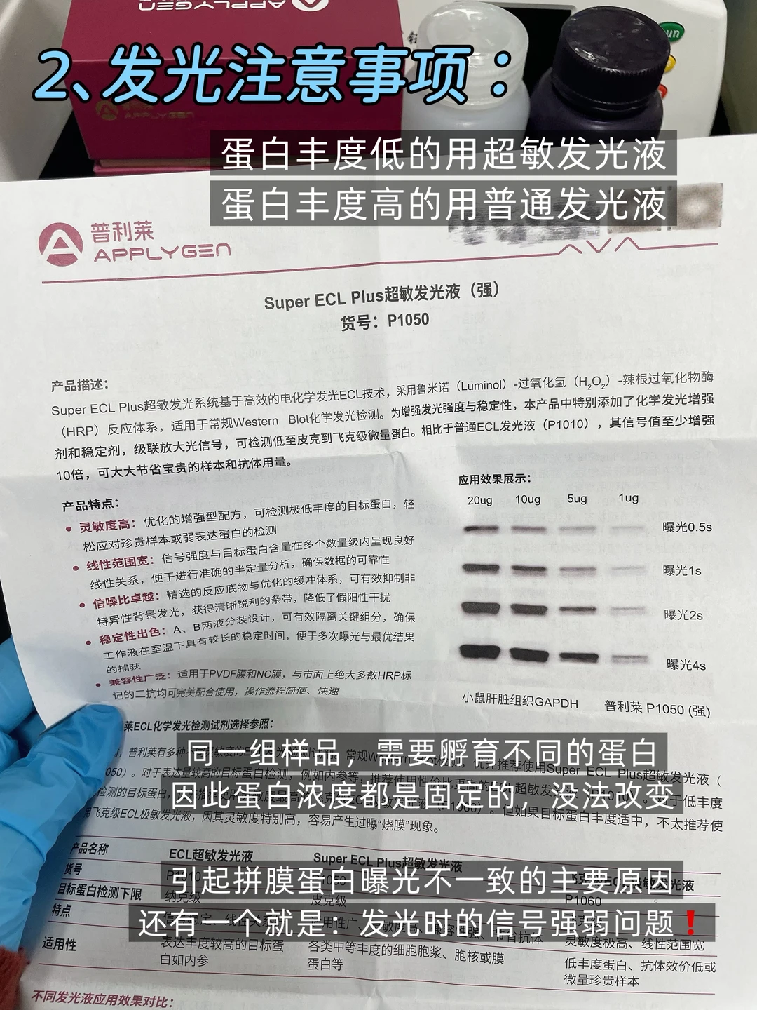 ➡️对于表达量较高的目标蛋白例如内参,使用普通发光液P1010就可以;