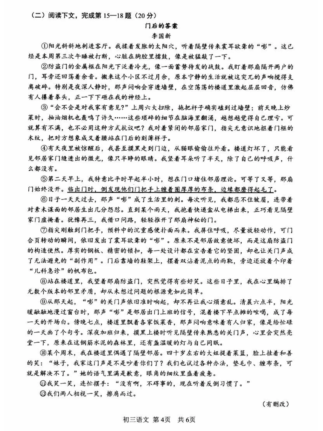 2026年松江二模卷出炉,考人物手法和结尾段