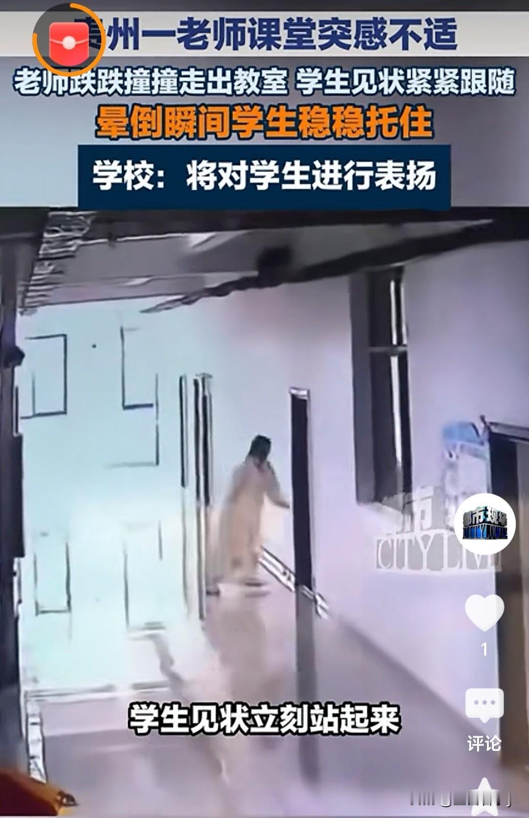 如果没有学生们及时的跑出来,英语老师要是晕倒了,也有可能会受伤。别看都是十几岁的孩子,小小年纪观察力都很强,都有一颗热情善良的心。
