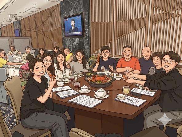 今天我们也学特朗普,把希望实现的目标,当作已经完成的任务,“第一啦!”我们举行了一个认真吹牛的工作晚餐。