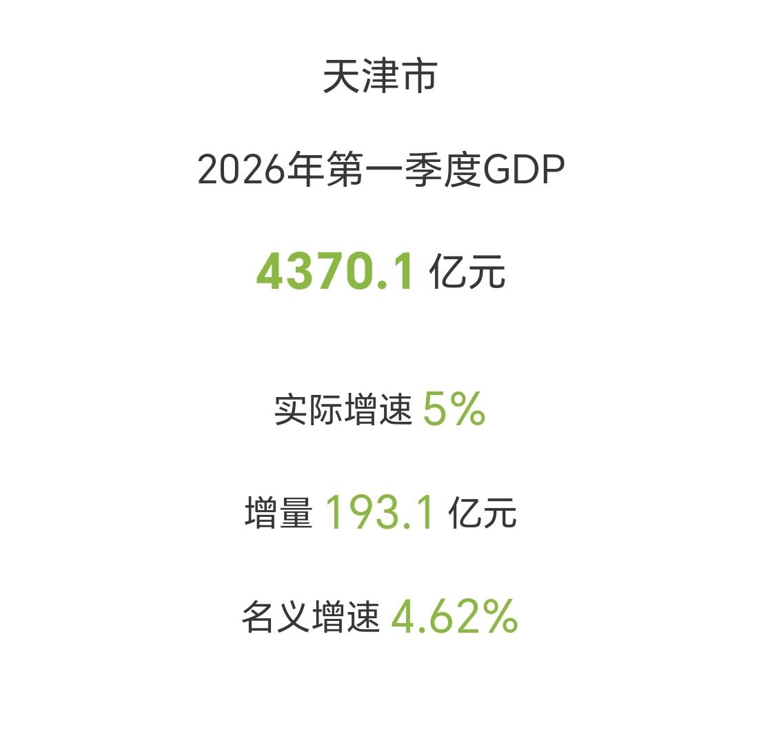 【2026年一季度,天津市GDP超过4300亿元,增量接近200亿元】 今年第