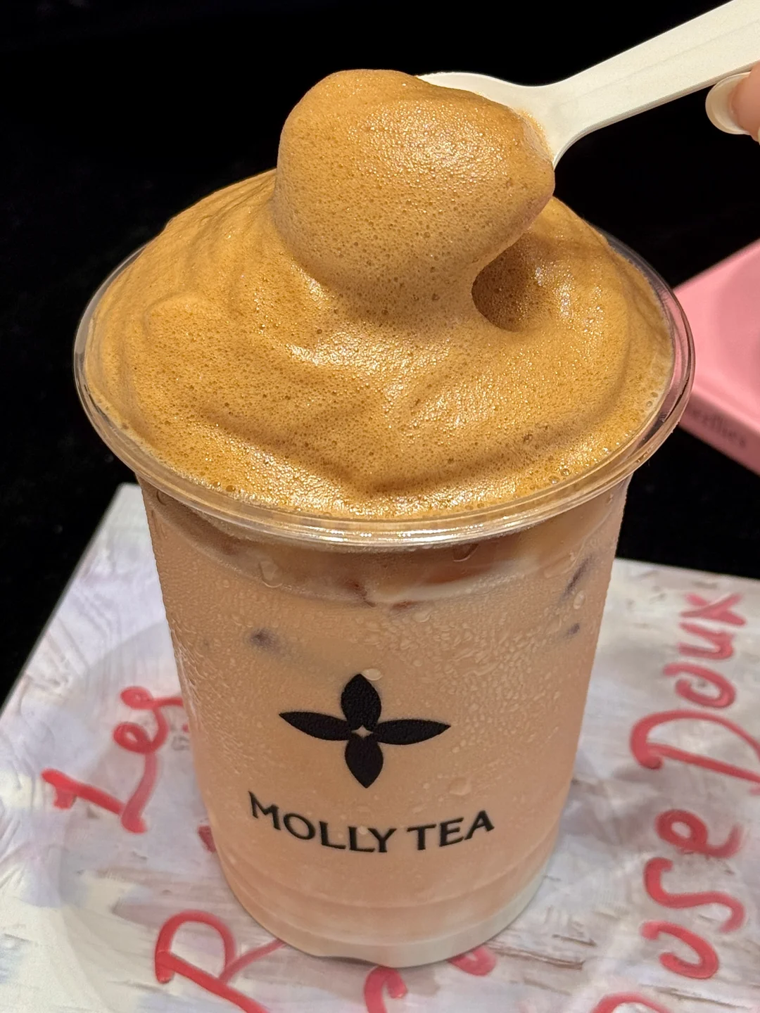 颜值与美味并存的一杯!夯爆了!顶上的400次咖啡绵云泰绝了🥹搭配丝滑的泰奶和浓郁的咸酪乳,大喝一口直接把我送到泰兰德!!!