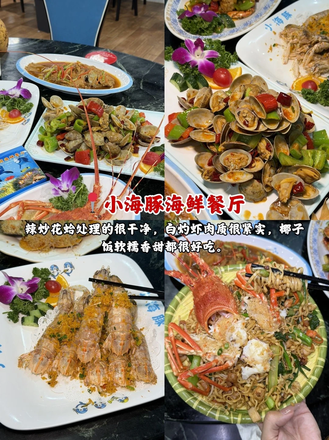 📍小海豚海鲜餐厅:来海棠湾吃三亚海鲜,不少人都推荐这家。辣炒花蛤处理的很干净,白灼虾肉质很紧实,椰子饭软糯香甜都很好吃,人多的时候上菜稍微慢一点,整体不错,下次还会再来。