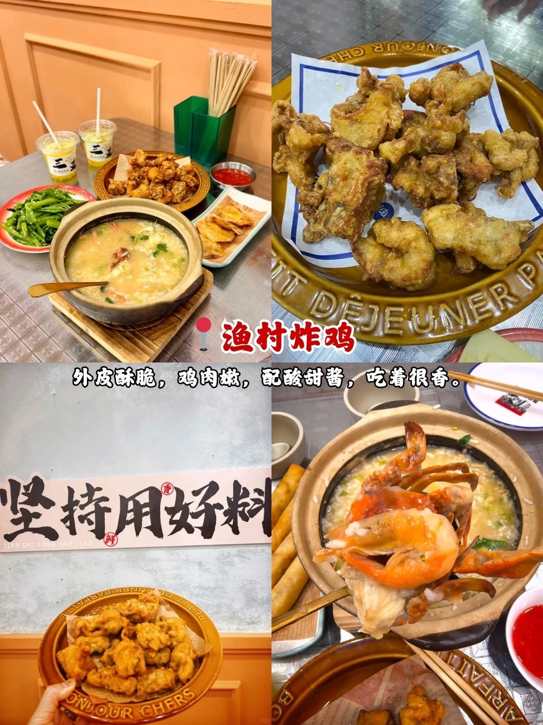 📍渔村炸鸡:外皮酥脆,鸡肉嫩,配酸甜酱,吃着很香。