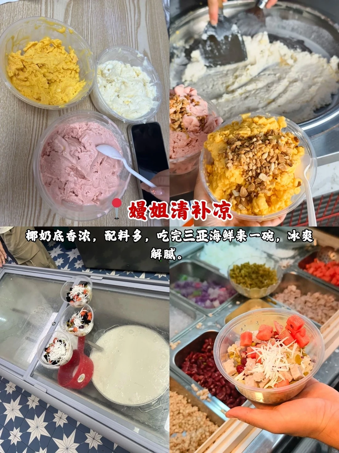 📍嫚姐清补凉:椰奶底香浓,配料多,吃完三亚海鲜来一碗,冰爽解腻。