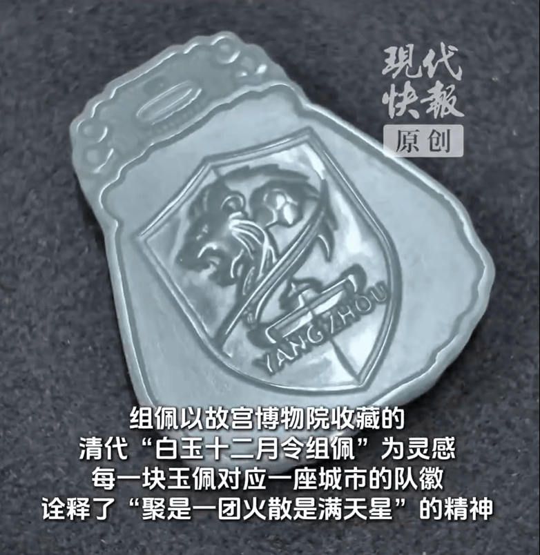 13块玉牌对应江苏13座城市队徽,环环相扣寓意同心聚力,“散装江苏”终于在玉佩上合体了,传统非遗与现代足球碰撞出别样火花。