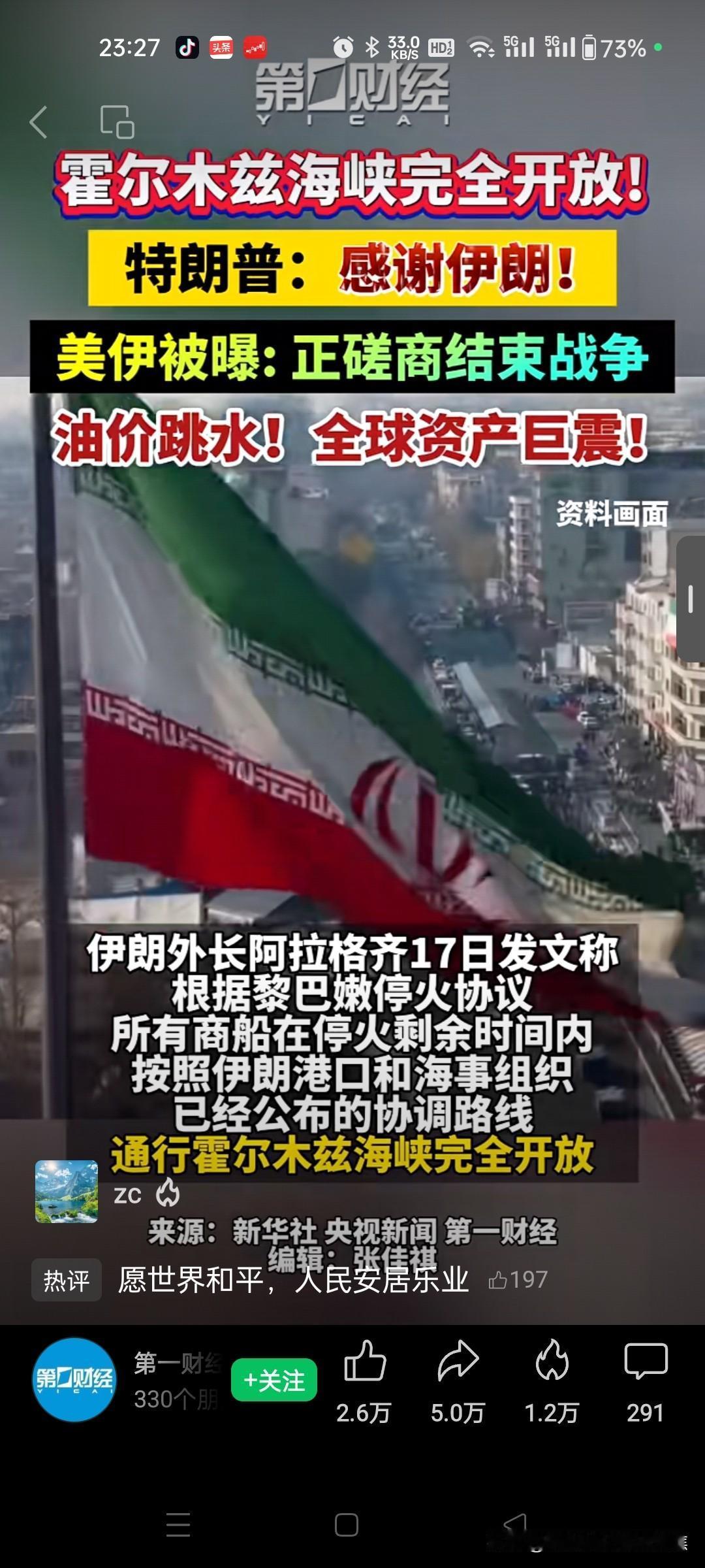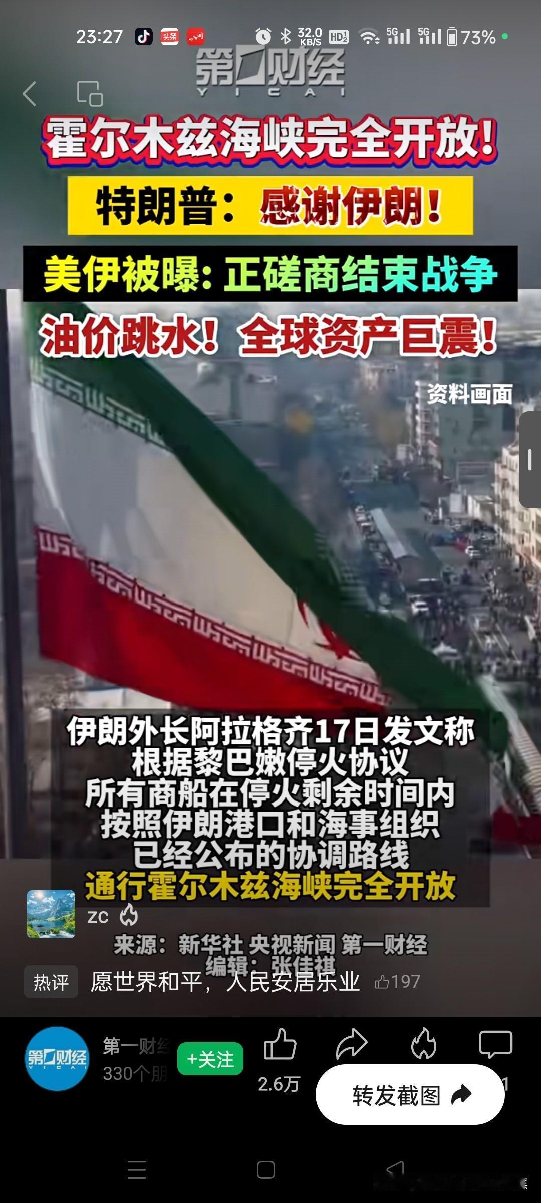 特朗普致谢伊朗。霍尔木兹海峡彻底开放!特朗普:感谢伊朗;美伊被曝正磋商停战;油价暴跌,全球震荡!