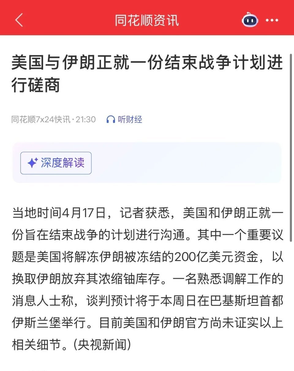 美伊局势重磅落地!战争预期实质性降温,全球市场下周走势关键判断本轮地缘冲突大概率迎来真正终结!今夜美伊局势接连释放重磅利好,战争结束信号密集确认,全球金融市场情绪将迎来关键抉择,是继续冲高还是利好兑现转利空,核心观点如下:一、今夜核心利好密集落地,战争结束信号明确1. 特朗普证实,伊朗已宣布开放霍尔木兹海峡,关键航道封锁风险彻底解除2. 美伊双方正就结束冲突展开磋商,和平谈判进程正式推进3. 以色列宣布全国基本解除战时限制,地区紧张局势全面缓和4. 国际原油价格大幅跳水,布油跌幅超10%,避险商品逻辑快速退潮5. 美元指数直线下探,人民币汇率同步走强,全球风险偏好显著回升二、市场早已计价预期,本轮上涨逻辑得到实锤验证此前全球股市持续走高、不断刷新阶段高点,本质是提前交易地缘冲突降温预期;而今夜一系列官方消息与市场异动,正是对前期乐观预期的直接证实。部分踏空、割肉资金仍对局势缓和持怀疑态度,但当前信号已足够明确:冲突无进一步升级可能,霍尔木兹海峡恢复通行、原油暴跌,均印证避险逻辑终结,机构与主流资金做多意愿持续回暖。今日A股放量上行,正是焦虑型资金、踏空资金集中入场的体现:这类资金包含前期等待回调未果的观望盘,也包含此前低位割肉的离场资金。A股向来存在“追涨强于抄底”的情绪特征,指数越上行,场外资金入场意愿越强,反之下跌则易引发集中割肉,短期情绪惯性仍在。三、下周关键判断:顺势做多为主,警惕利好落地兑现风险短期来看,美伊局势缓和、全球股市趋势性反弹,将继续支撑A股延续反弹节奏,周末利好加持下,下周市场仍有上行空间。但需警惕利好兑现成利空的节点:若后续美伊正式同步官宣结束战争,前期持续上涨的预期逻辑将彻底落地,资金大概率借机获利了结,短期冲高回落风险会显著加大。总体策略:下周仍以顺势看多、跟随趋势操作为主,重点跟踪盘面情绪与地缘消息兑现节奏,做好高位止盈准备,不盲目追高。