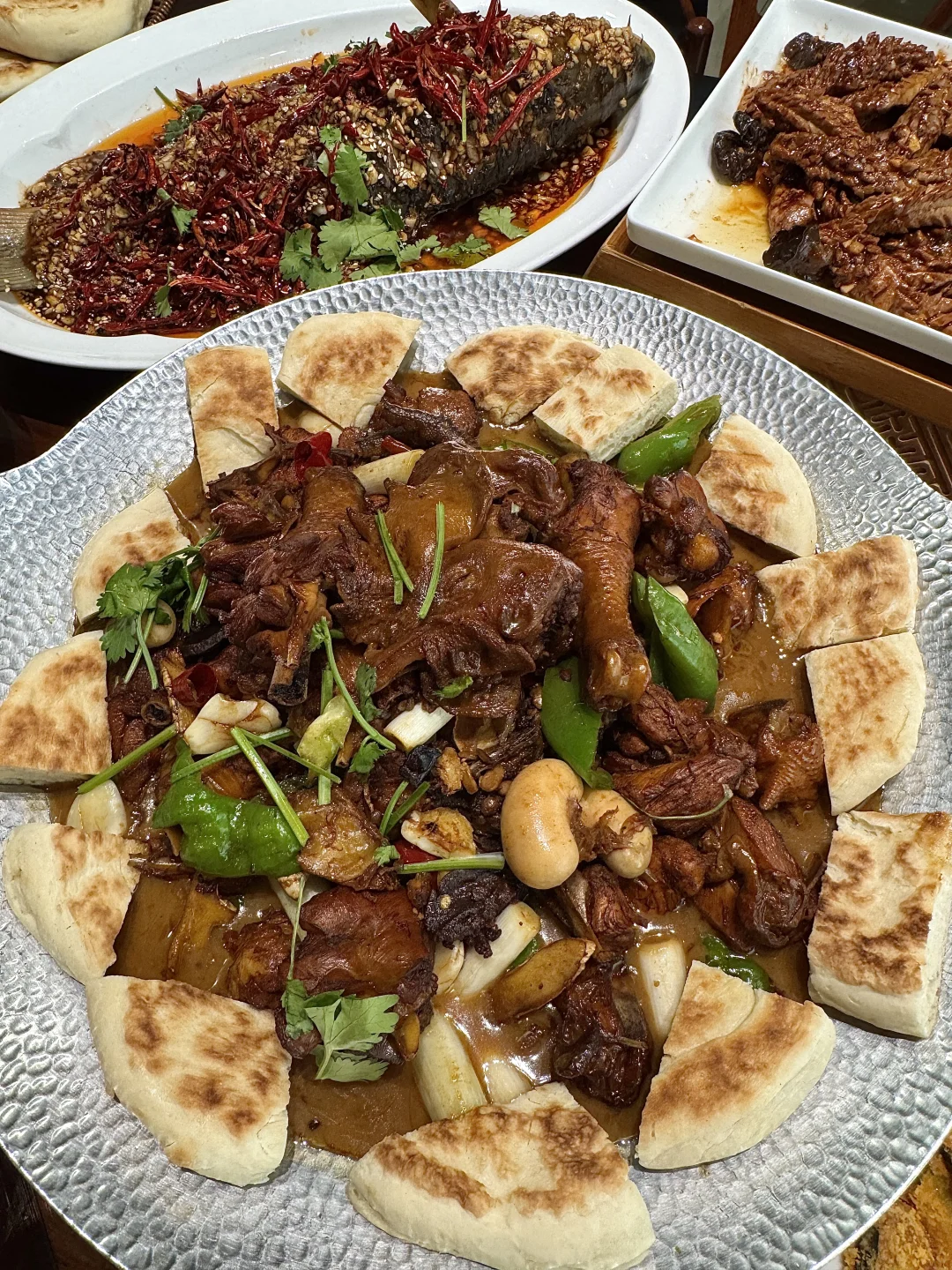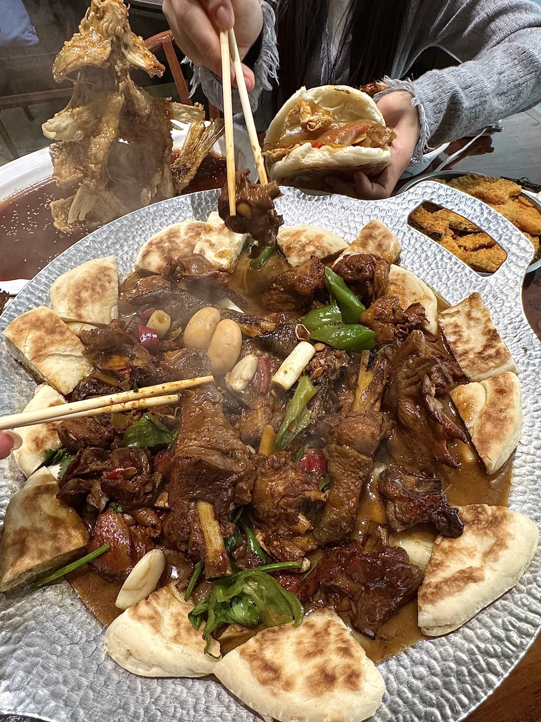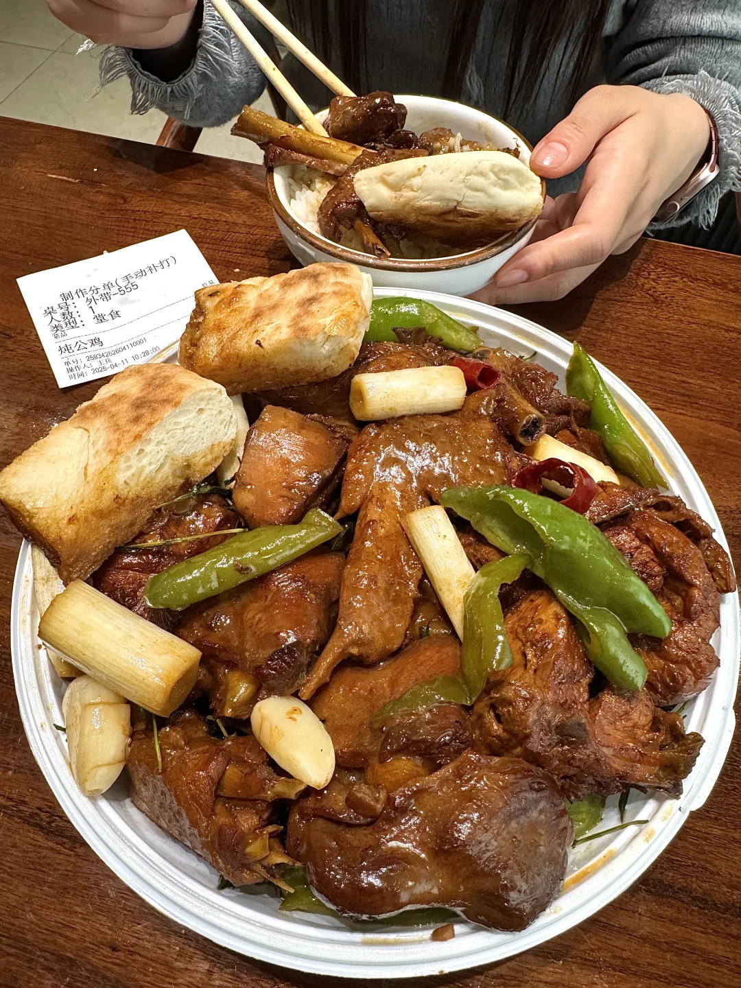 ☑️炖公鸡:满满一大盆,不愧是好客山东,分量给的惊人!酱汁配火烧,好吃到不知天地为何物了……