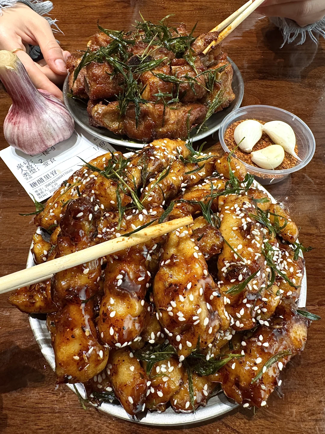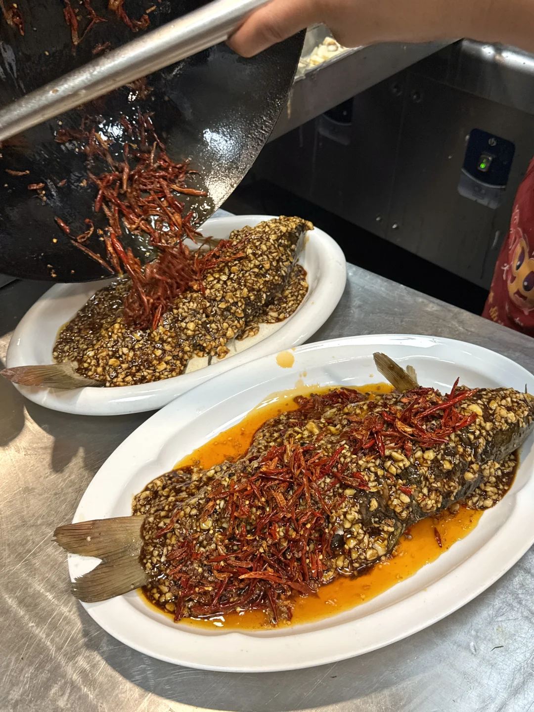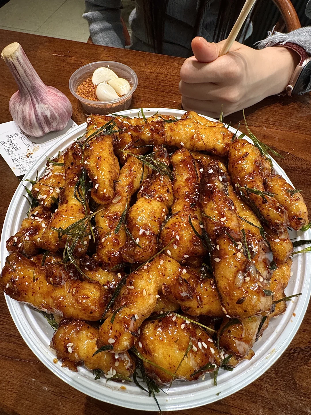 ☑️香辣蒜香鲤鱼🐟:蒜香浓郁,鱼肉外酥里嫩,超级入味~