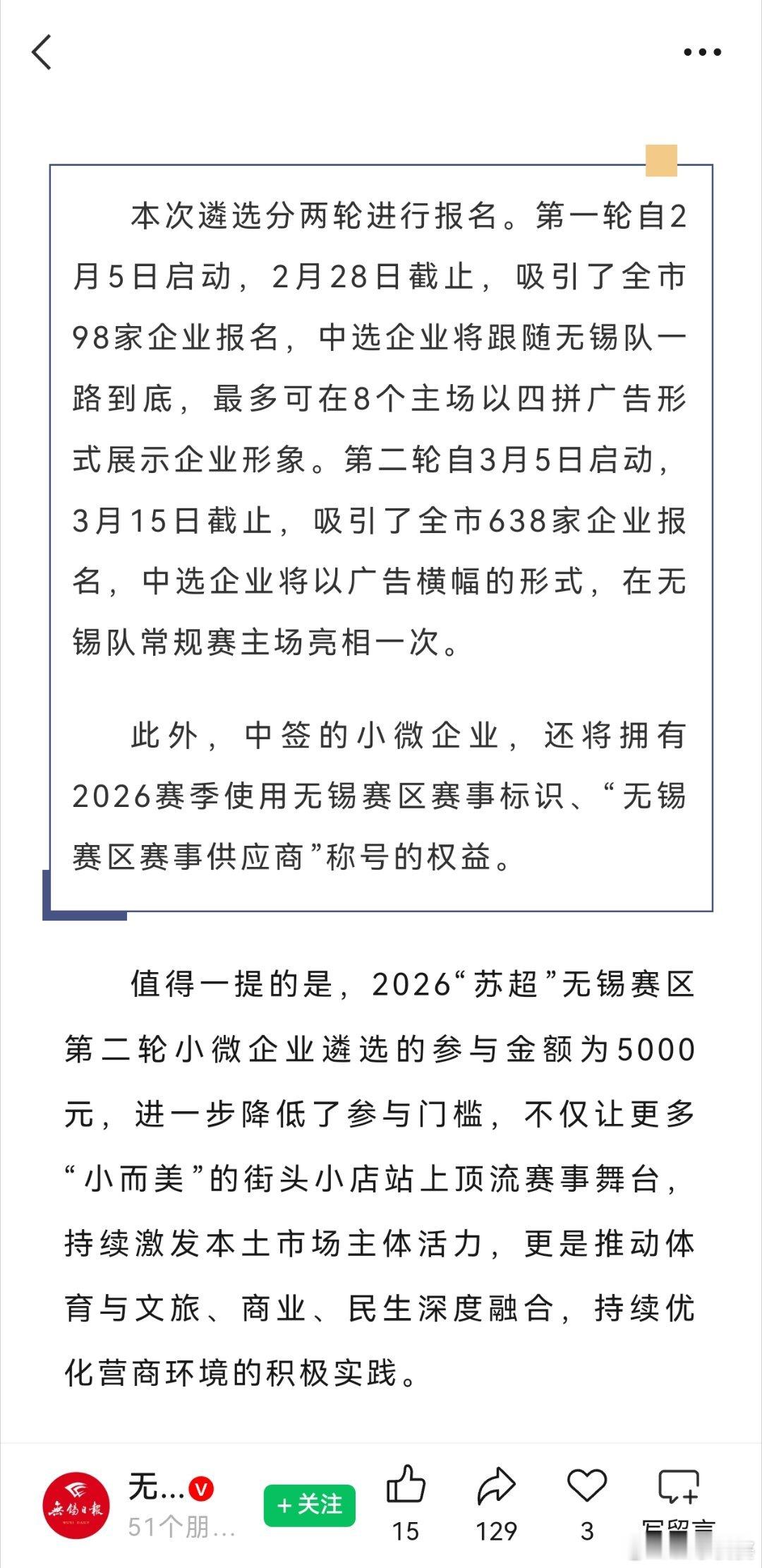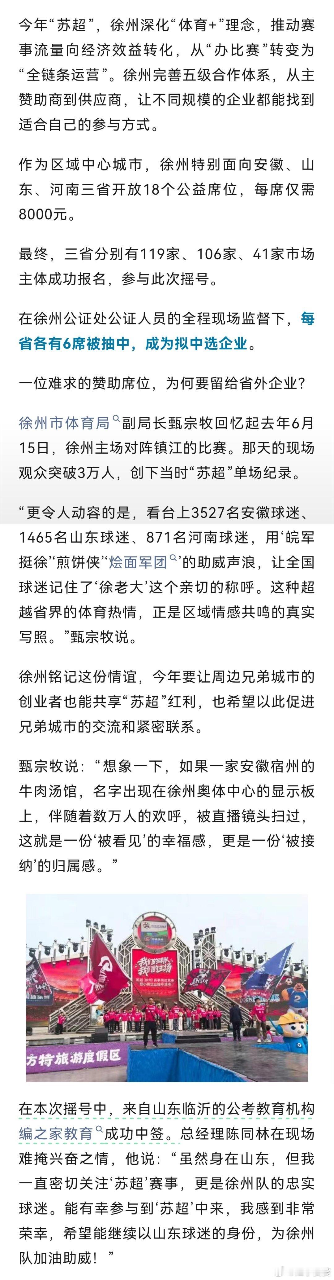 比如无锡就在第二轮把小微企业赞助费用直接砍了一个0,本地小企业只需要5000块赞助费就有机会和一众商业巨兽一起登上苏超舞台了。当然,你得能抽中。
