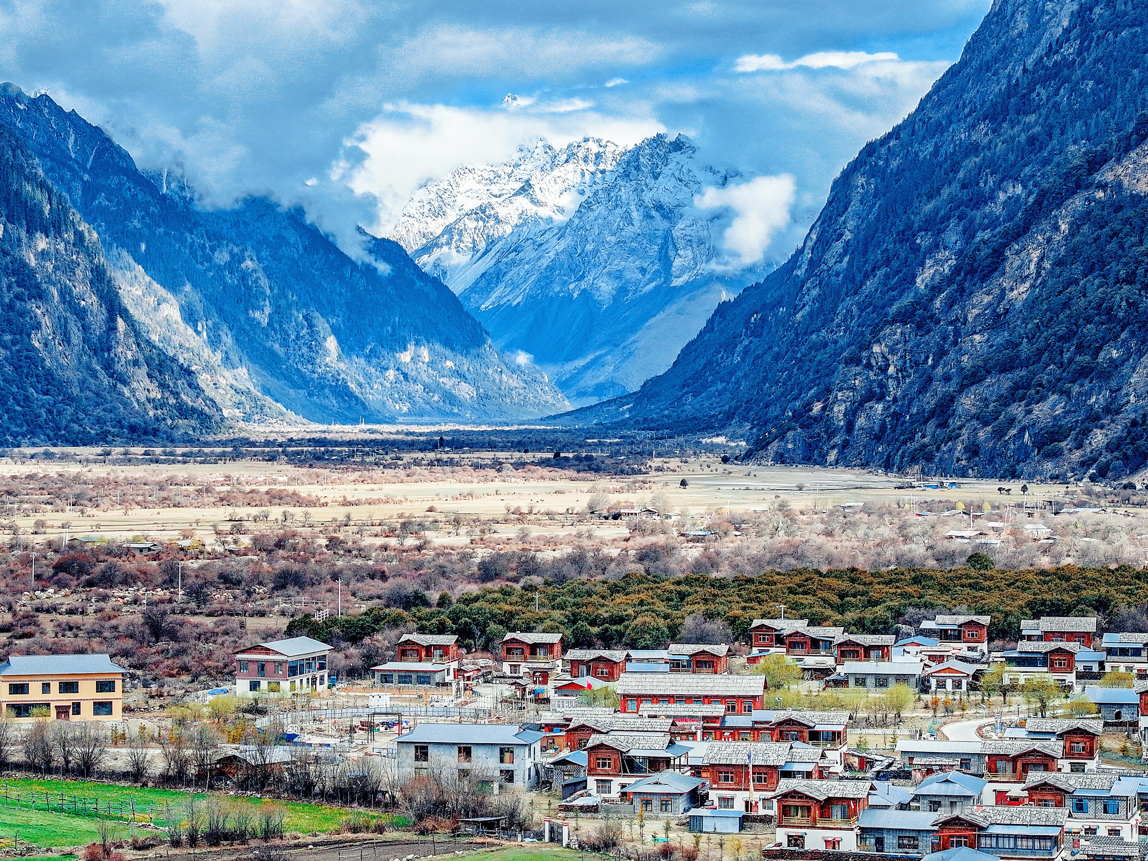 最深处是错高古村,这里的古建筑美像一个梦:石墙斑驳,木窗雕花,屋檐下晾着青稞。这里的每一块石头都认识风,每一扇木门都见过上百个春天。雪山下的古村,美得让人心醉,也难怪有人盛誉:中国十大最美乡村之一。